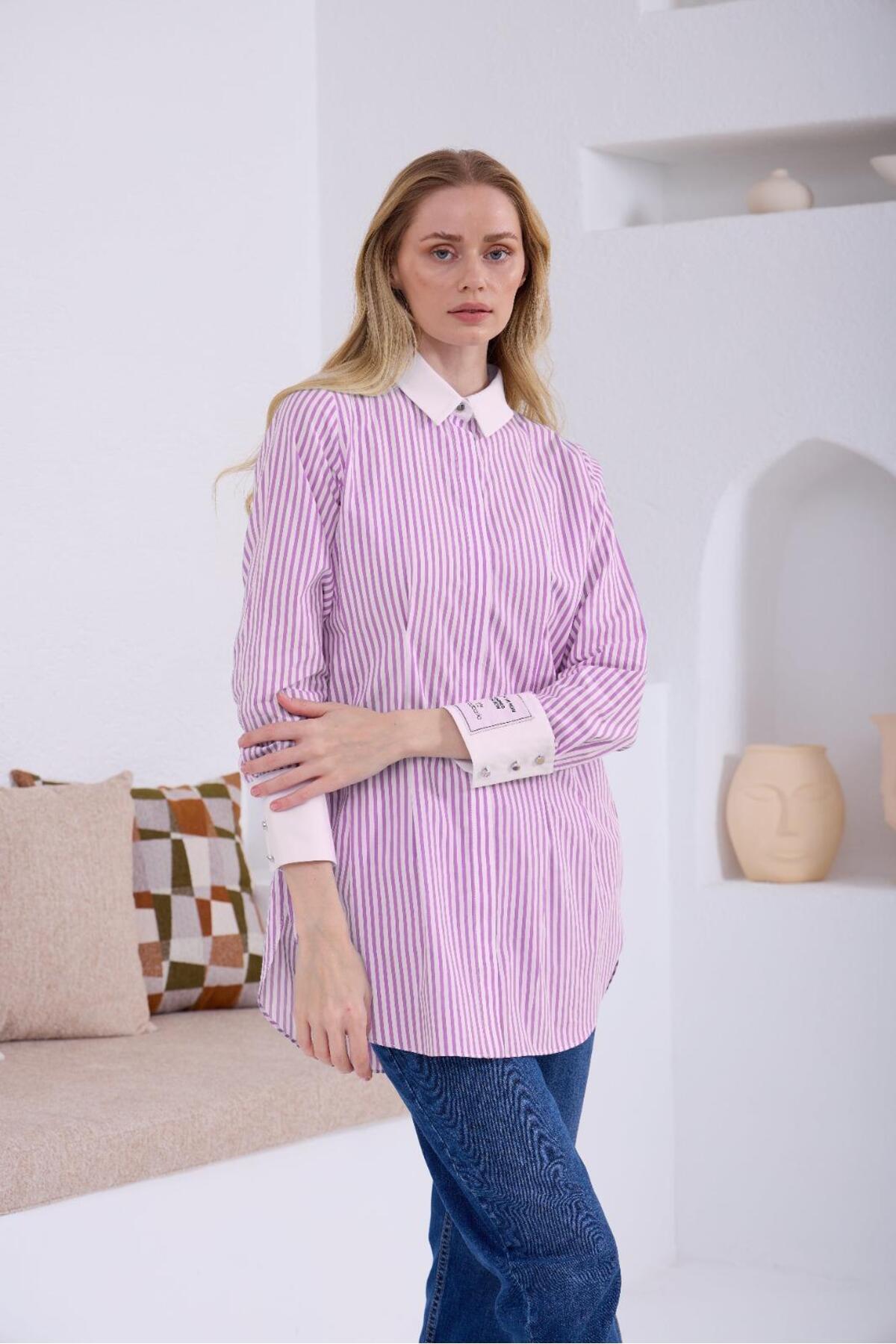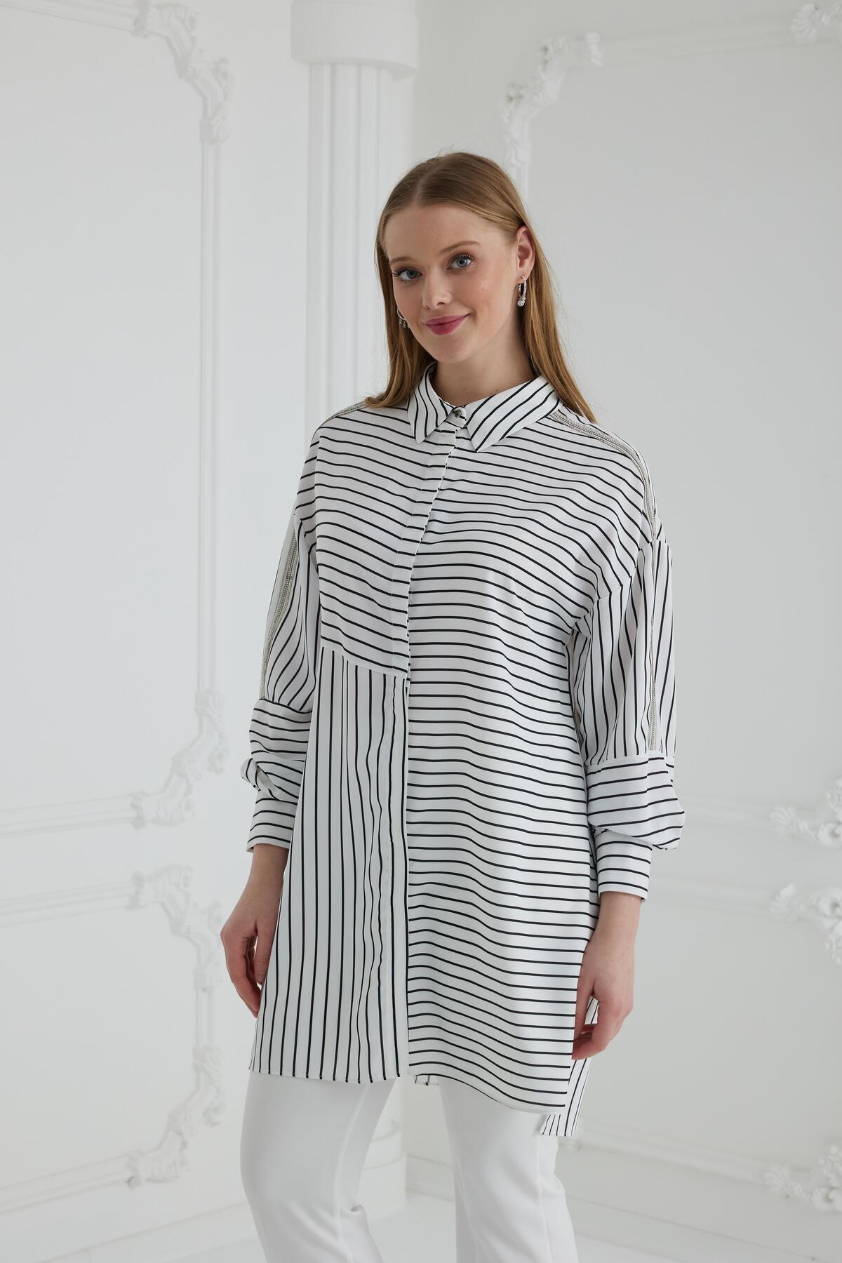 Çizgi Desenli Krep Tunik - Yeşil Çizgi Desenli Krep Tunik - Yeşil MB11.186 LSTD