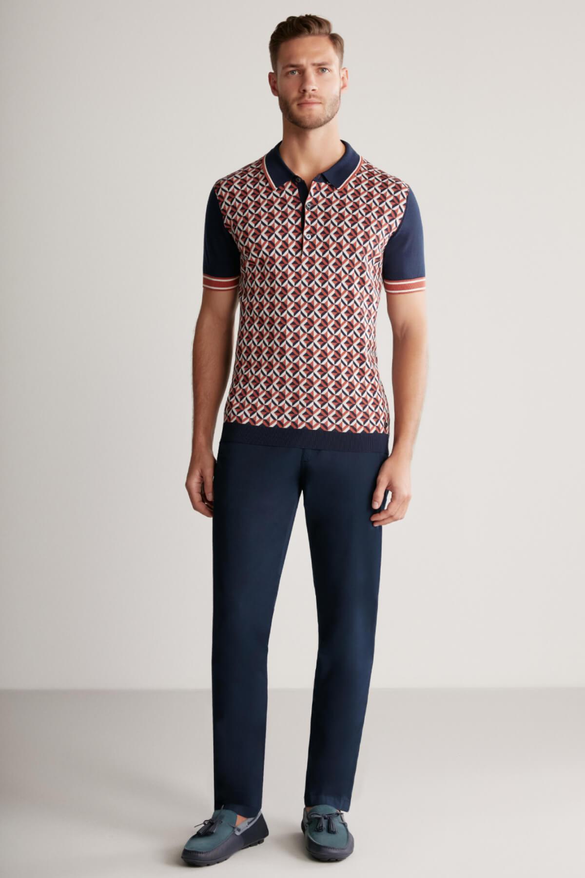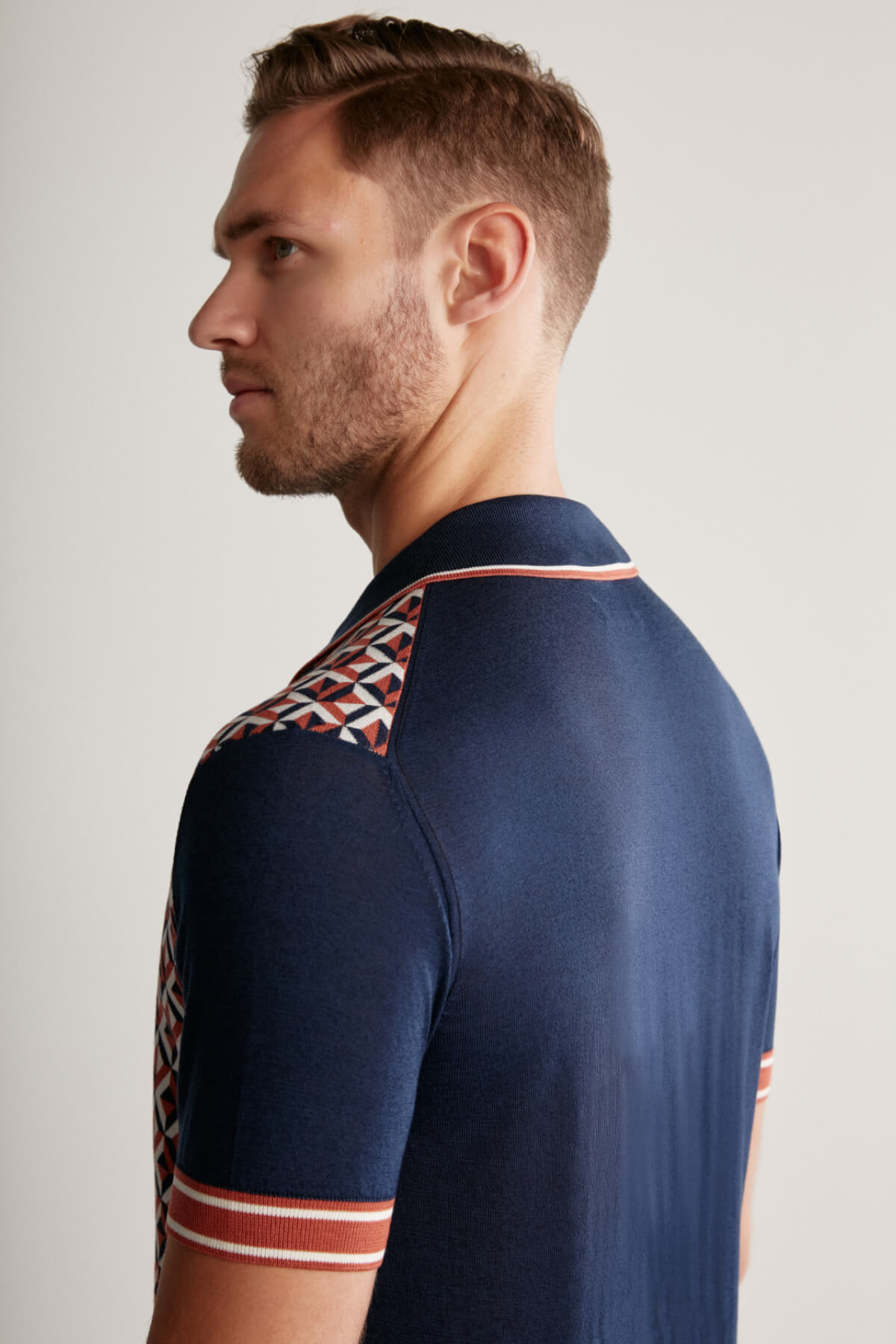 İpek Pamuk Karışım Desen Lacivert Triko Polo İpek Pamuk Karışım Desen Lacivert Triko Polo 232128|010 3XL