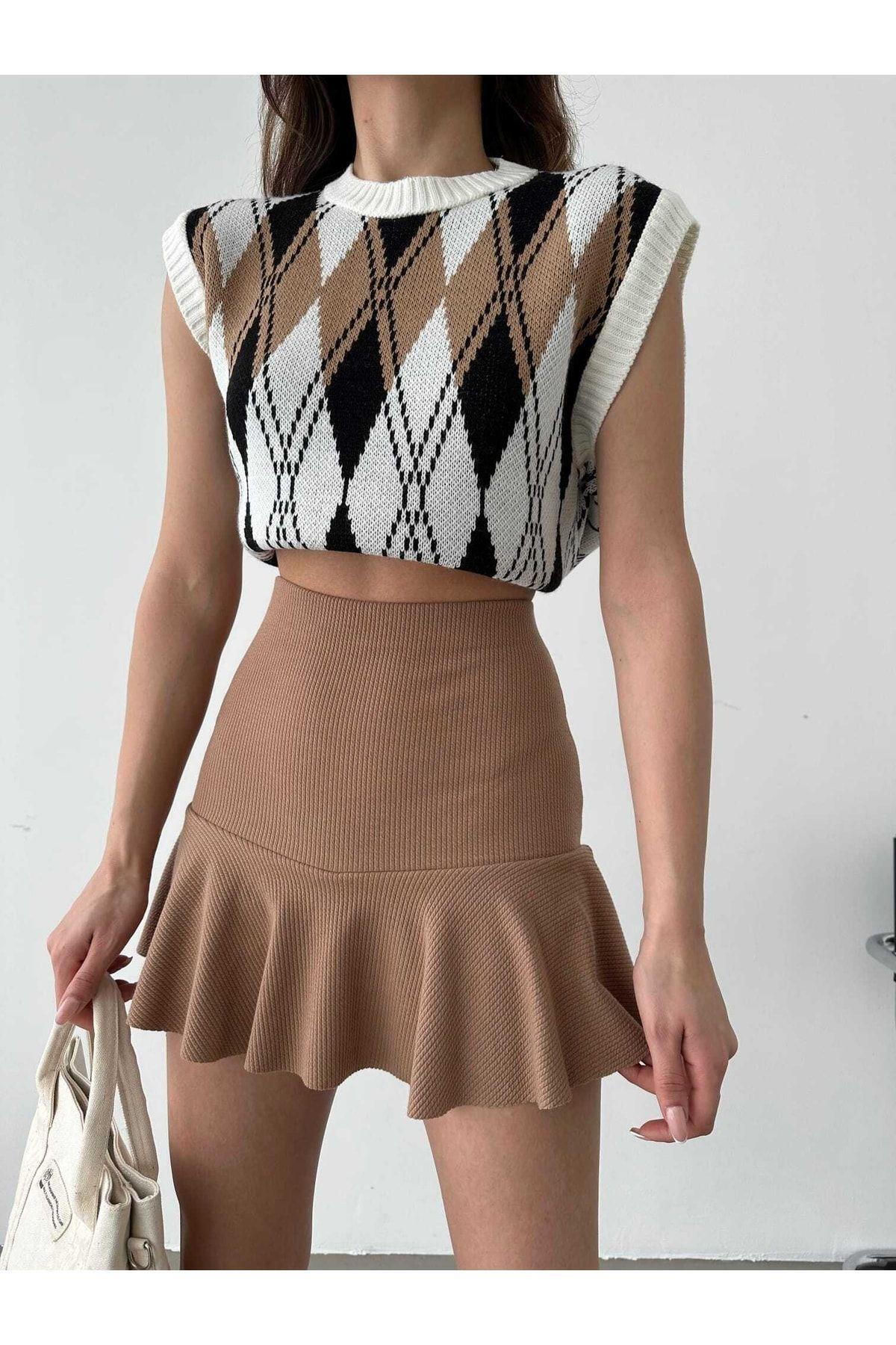 Fitilli Volanlı Şort Etek Fitilli Volanlı Şort Etek FVŞE50 L