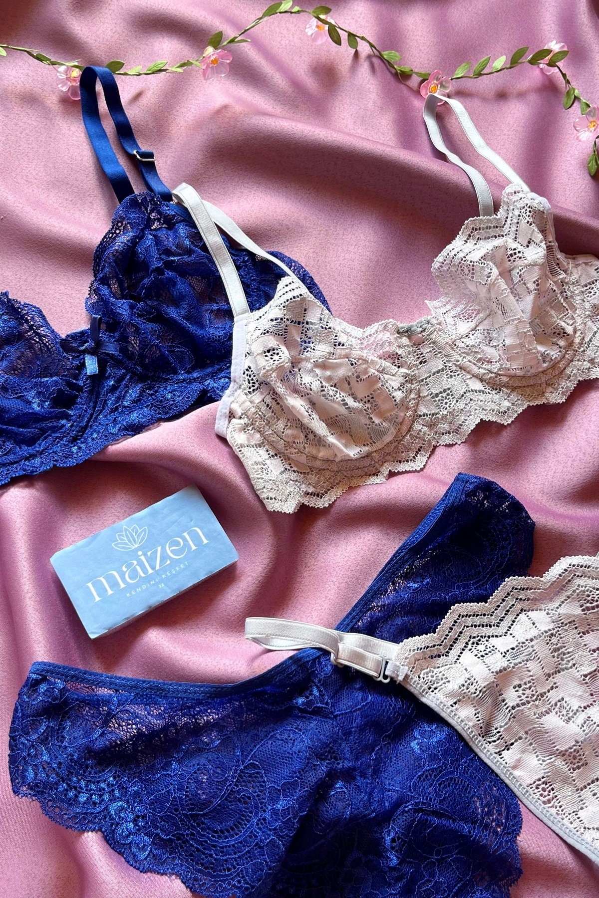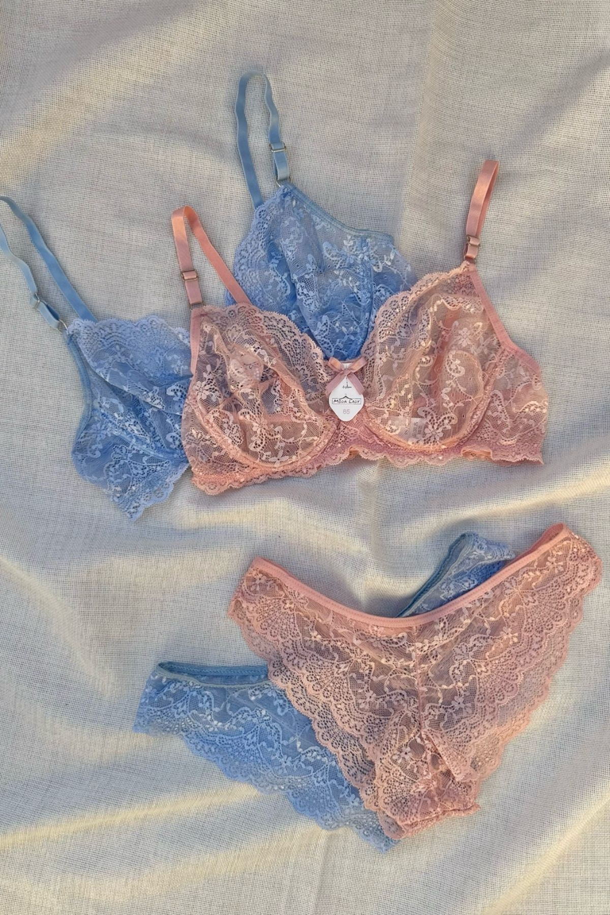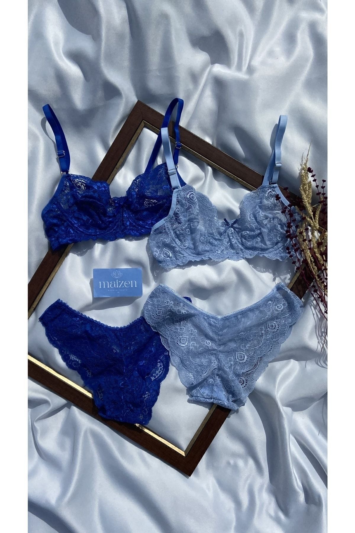 Kadın Dolgusuz Toparlayıcı 2'li Mavi Dantelli Sütyen Takımı Kadın Dolgusuz Toparlayıcı 2'li Mavi Dantelli Sütyen Takımı SET01 90