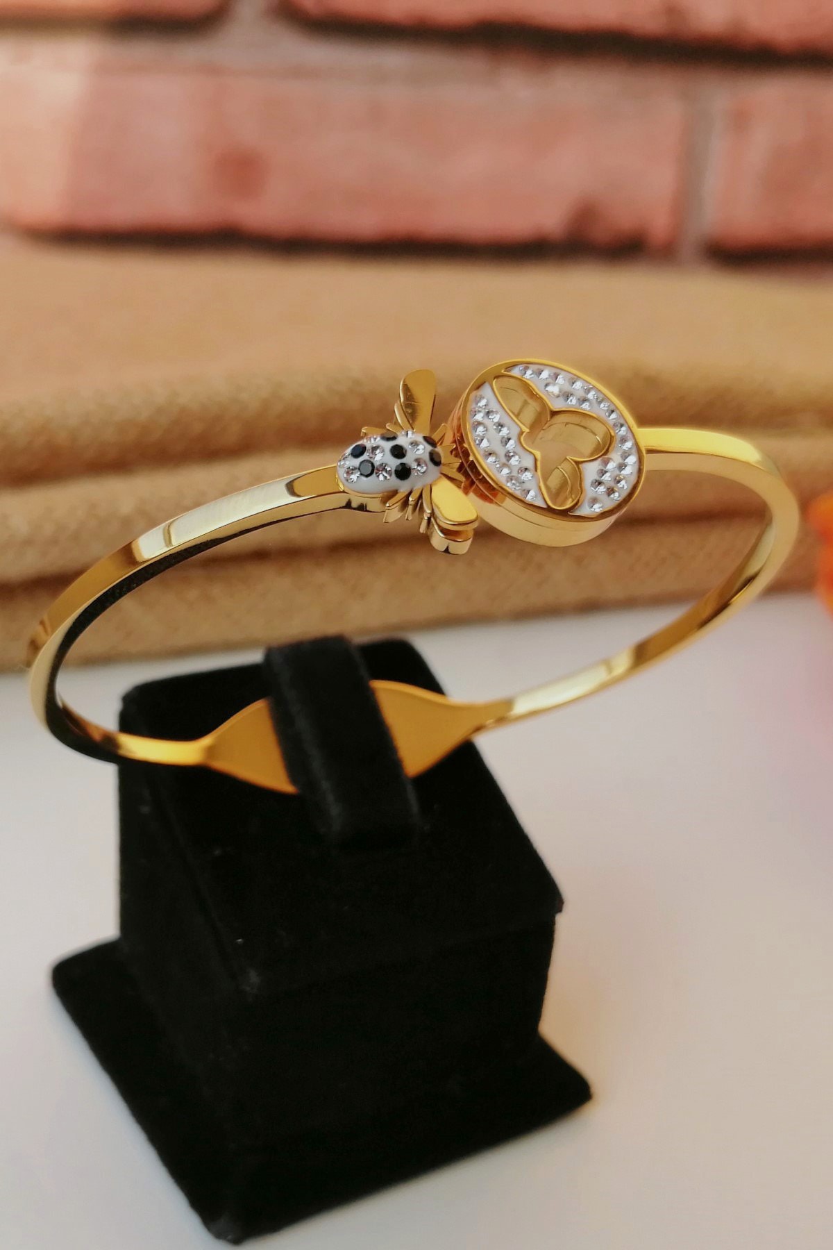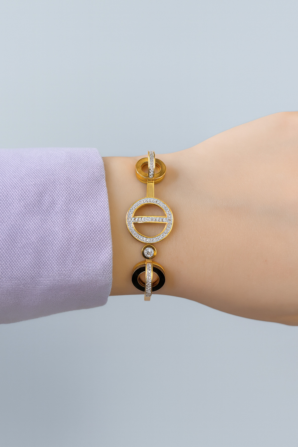 Gold Çelik Kelepçe , Rondela Zirkon Taşlı Sedefli Bileklik Gold Çelik Kelepçe , Rondela Zirkon Taşlı Sedefli Bileklik MG020020061S تک سایز