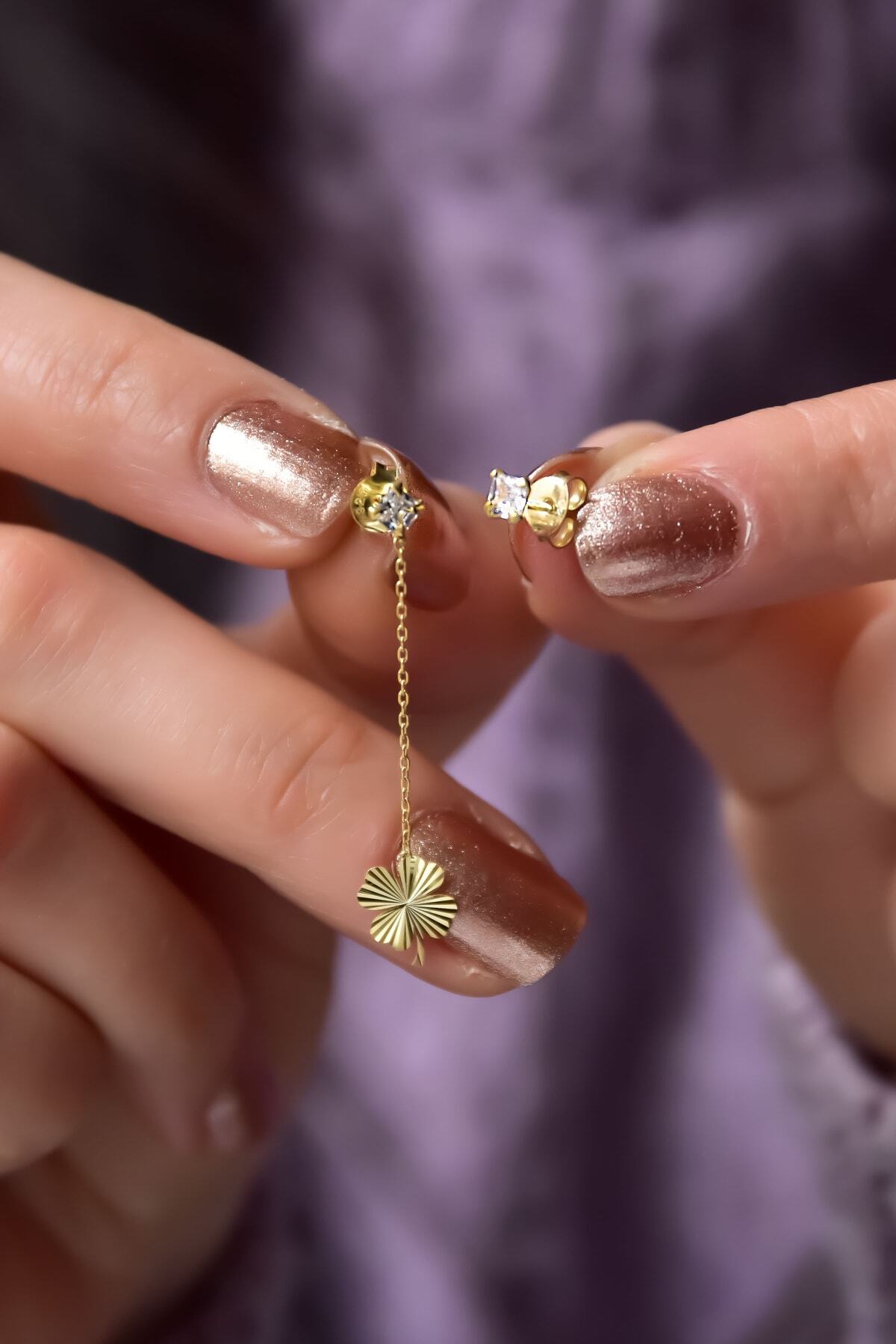 925 Ayar Gümüş Gold Kaplama Kalemli Zincir Yonca, Taşlı Ve Top Küpe 925 Ayar Gümüş Gold Kaplama Kalemli Zincir Yonca, Taşlı Ve Top Küpe UVPTS300581 تک سایز