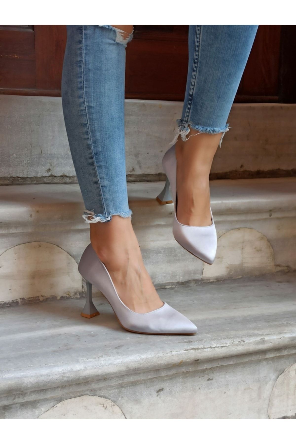 Kadın Gümüş Saten Yaprak Taş Topuklu Ayakkabı 9 cm Kadın Gümüş Saten Yaprak Taş Topuklu Ayakkabı 9 cm DS-BOSS 41