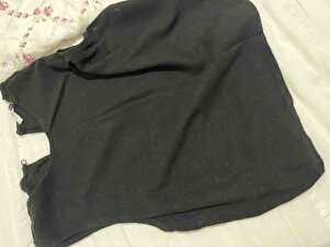 Siyah Bol Kesim Bisiklet Yaka Kolsuz Keten Bluz Siyah Bol Kesim Bisiklet Yaka Kolsuz Keten Bluz 23SB2025 XL
