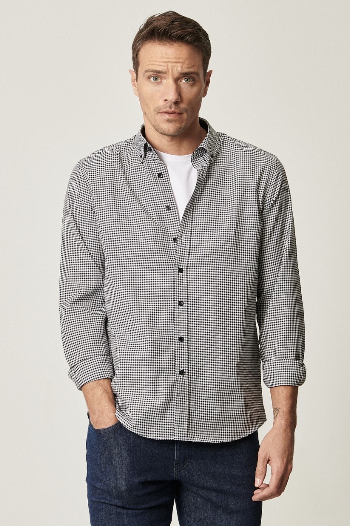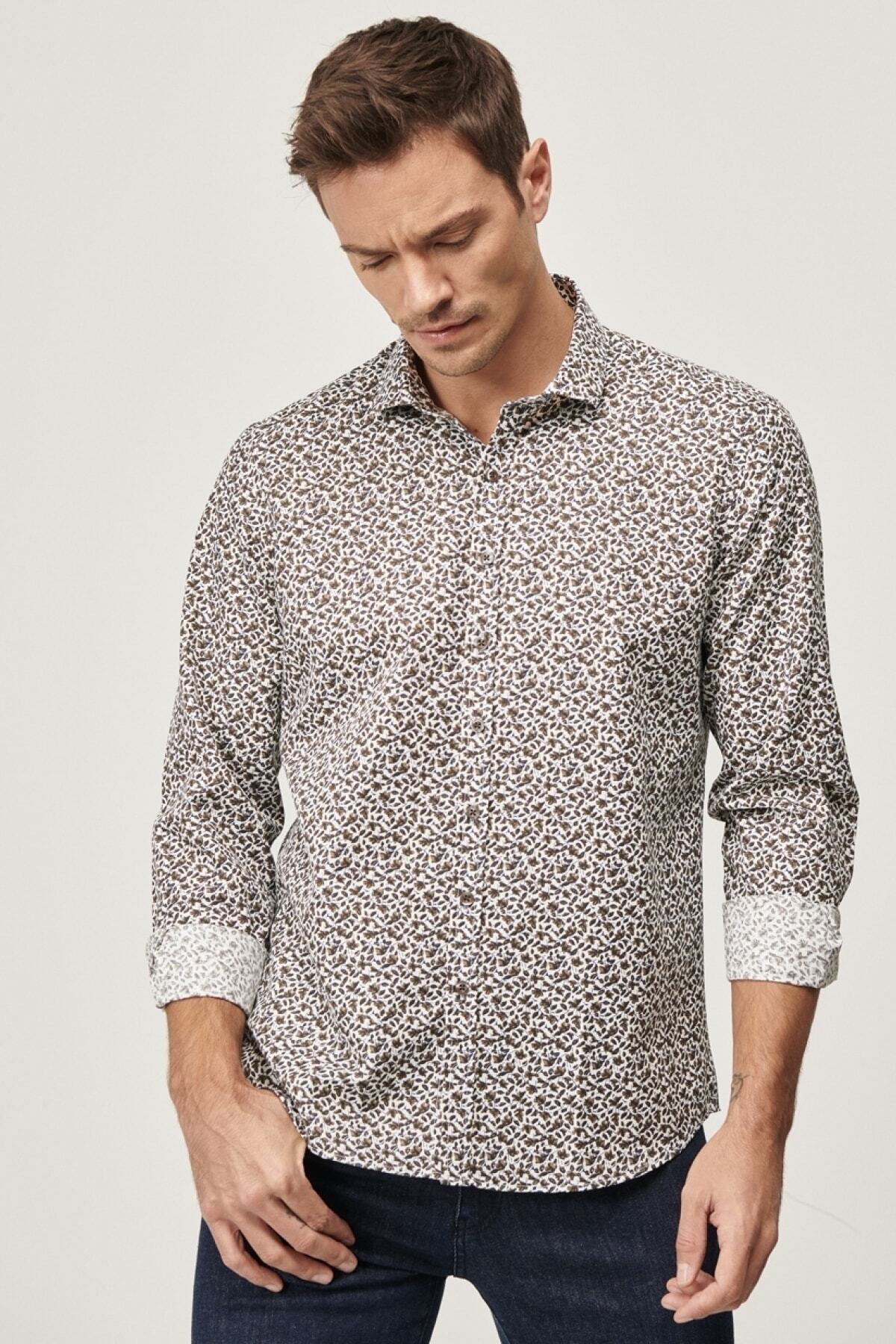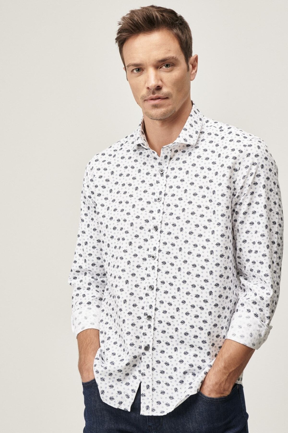 Erkek Beyaz-mavi Tailored Slim Fit Dar Kesim Düğmeli Yaka Baskılı Gömlek Erkek Beyaz-mavi Tailored Slim Fit Dar Kesim Düğmeli Yaka Baskılı Gömlek 4A2021100133 2XL