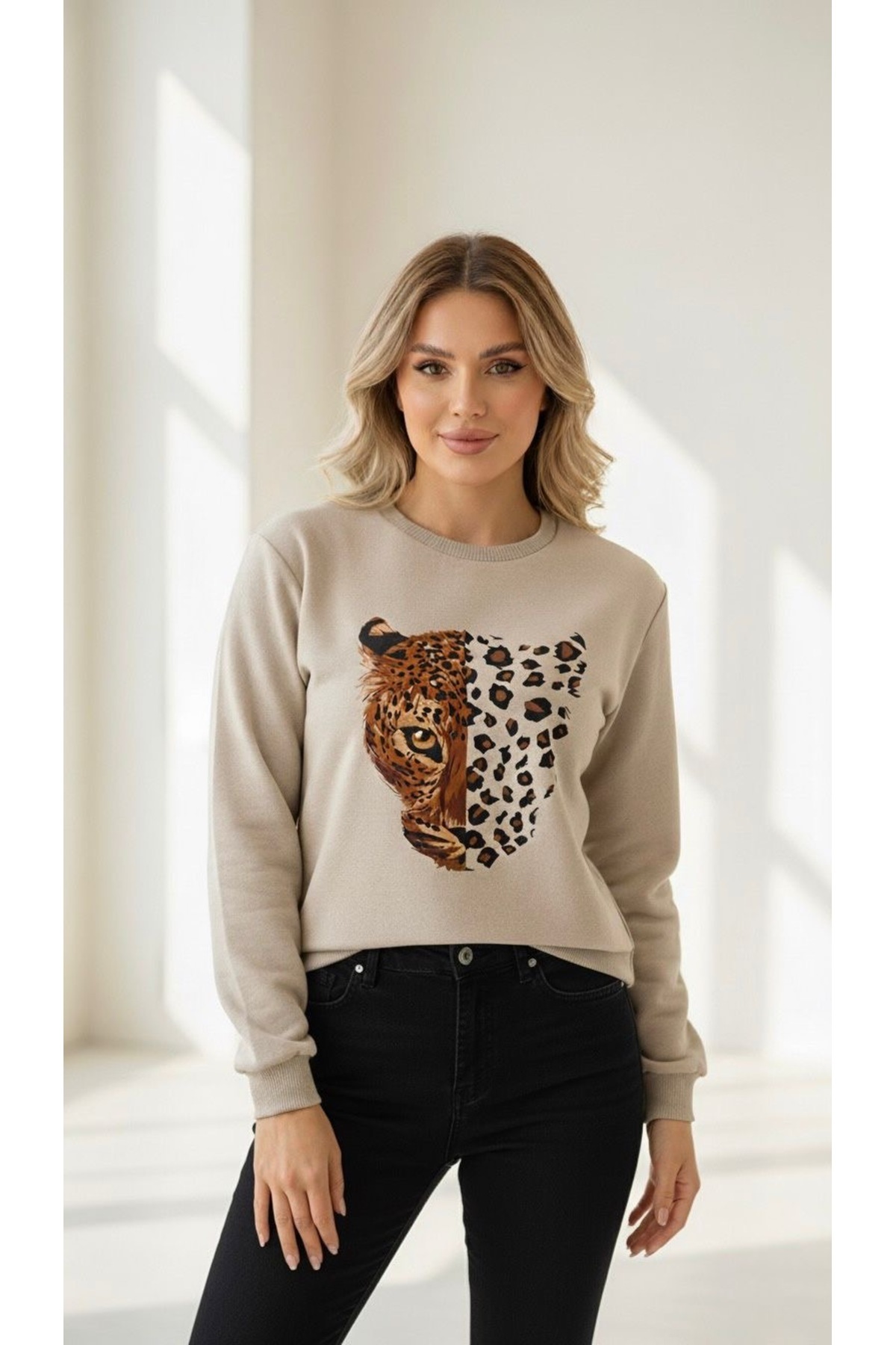 Unisex Bej Leopar Brooklyn Baskılı Bisiklet Yaka Oversize Sweatshirt Unisex Bej Leopar Brooklyn Baskılı Bisiklet Yaka Oversize Sweatshirt Leoparbrooklyn XL