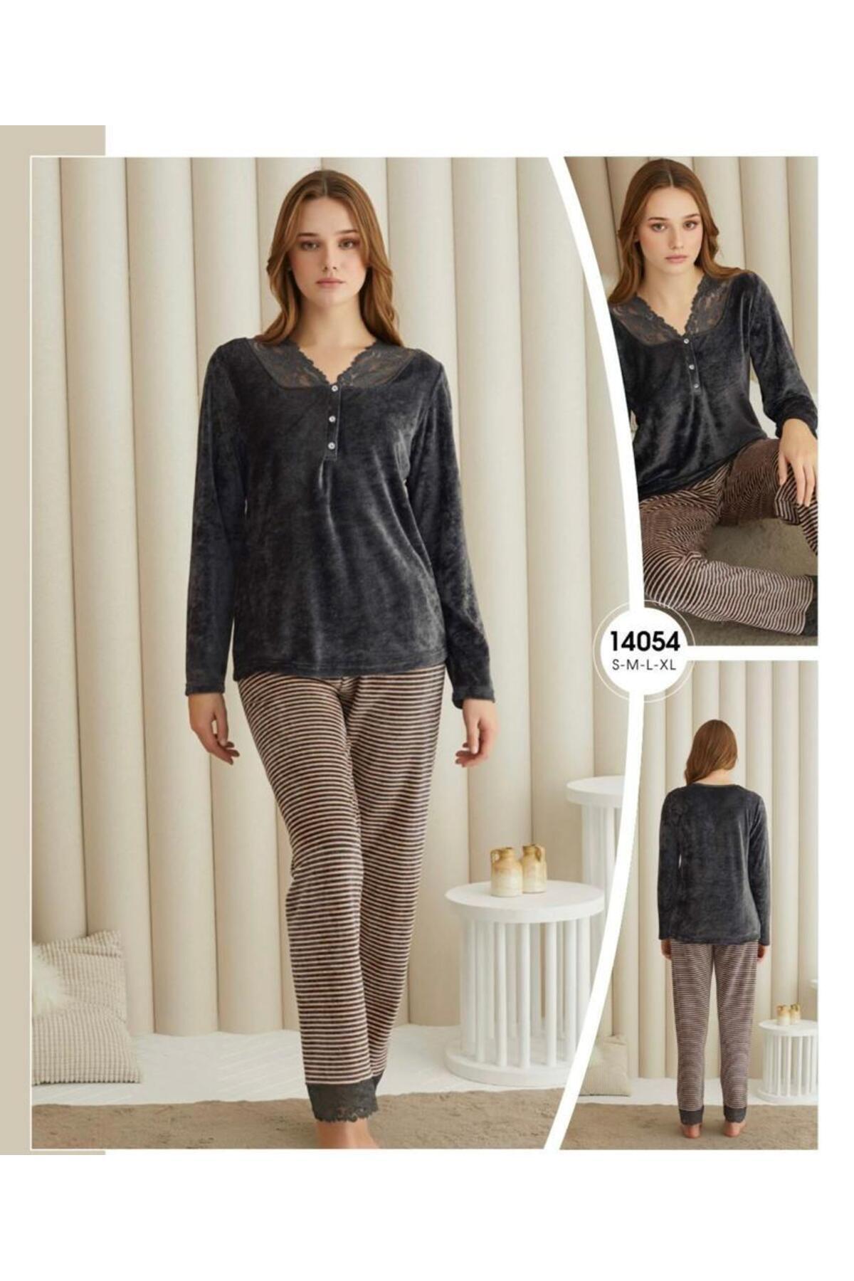 Kadın Bordo Kadfife Nakışlı Düğmeli Pijama Takım Kadın Bordo Kadfife Nakışlı Düğmeli Pijama Takım 12625 XL