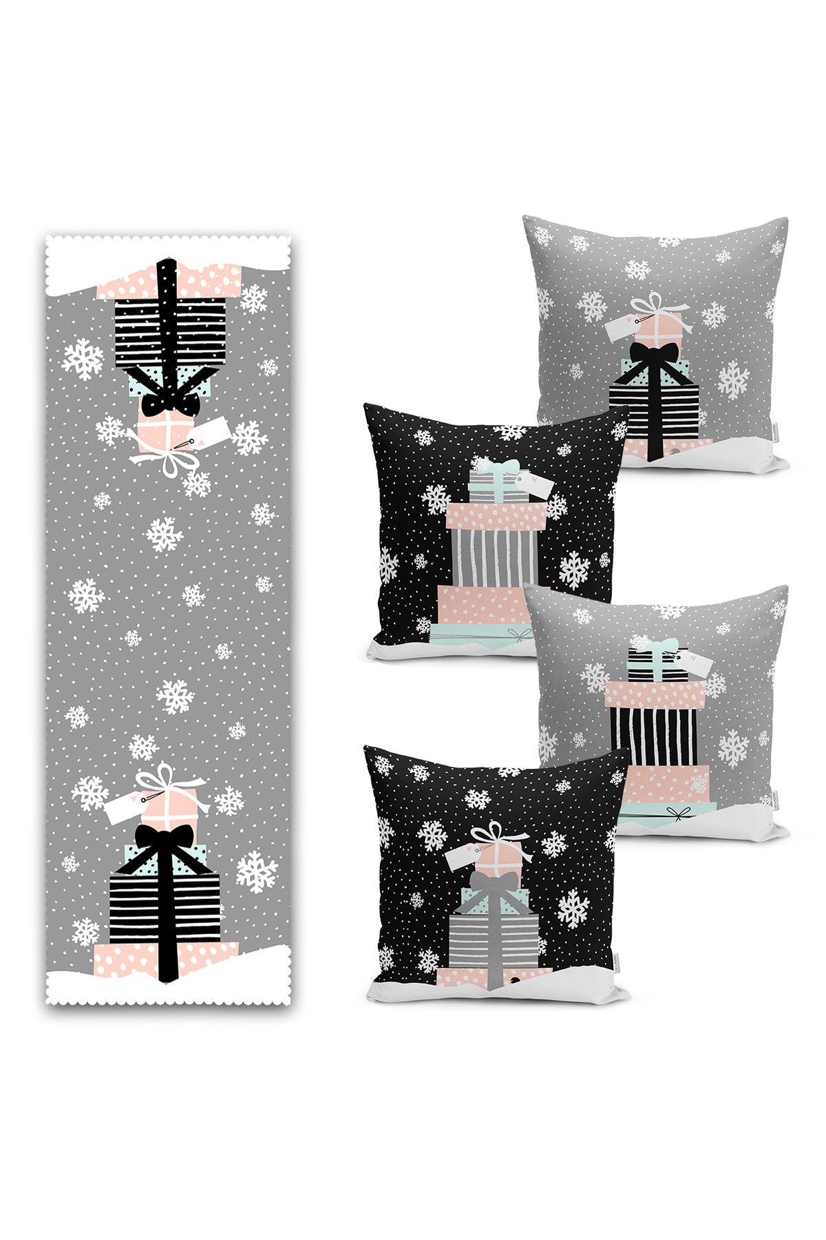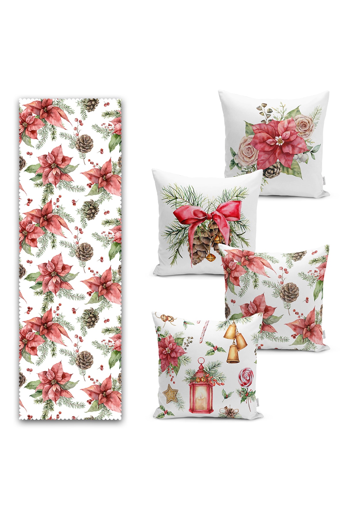 Yılbaşı Özel 4 Kırlent Kılıfı Ve Runner Seti Yılbaşı Özel 4 Kırlent Kılıfı Ve Runner Seti RunnerSet10 تک سایز