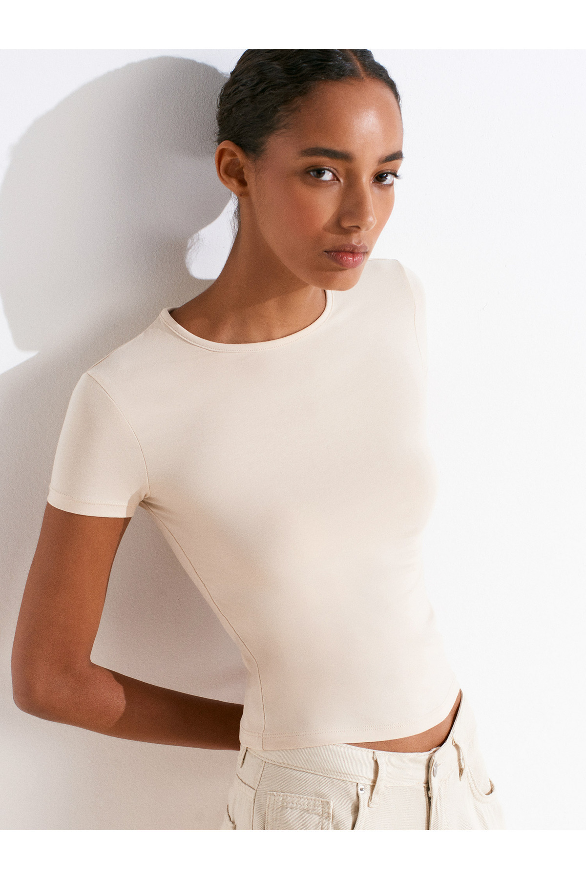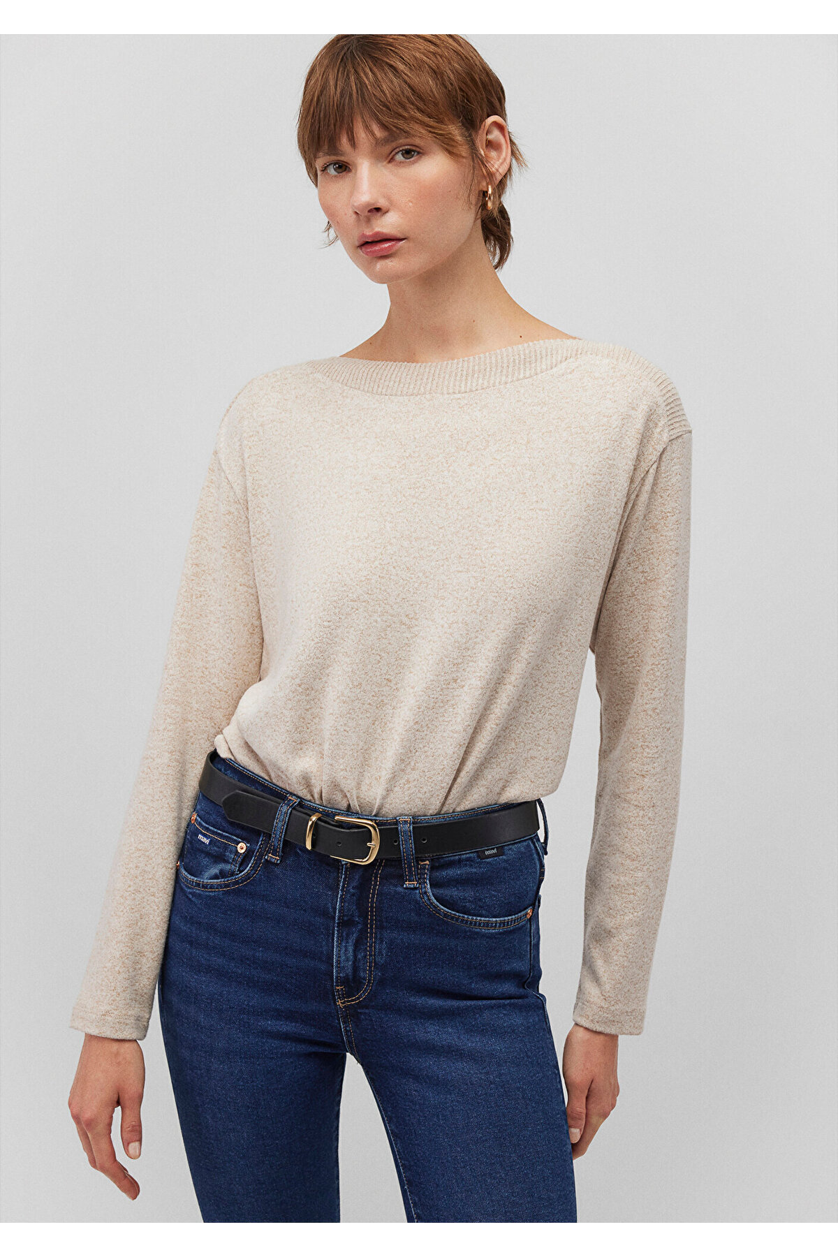 Kadın V Yaka Ince Çizgili Pamuklu Marin Triko T-shirt Taba-beyaz 23s1007 Kadın V Yaka Ince Çizgili Pamuklu Marin Triko T-shirt Taba-beyaz 23s1007 23S1007 L