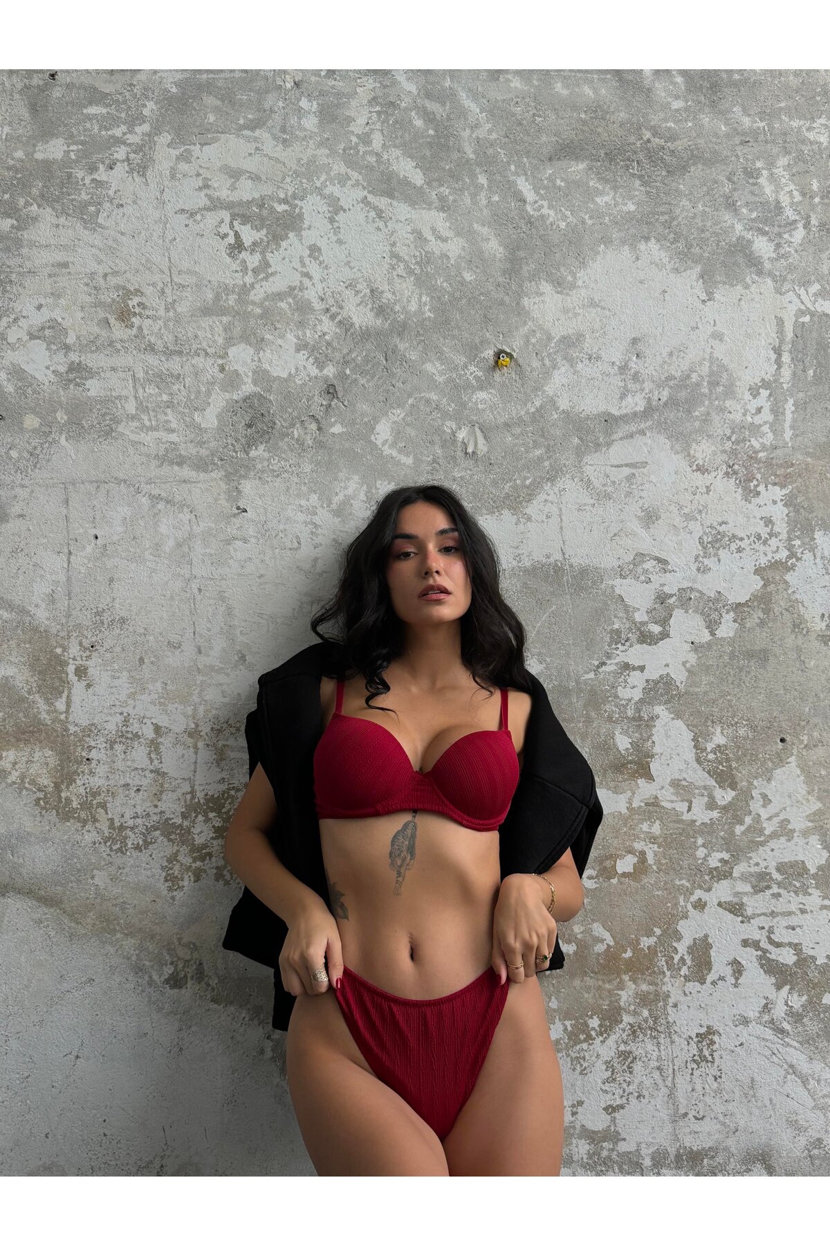 Basic Fitilli Desenli Destekli Ten Sütyen Takımı Basic Fitilli Desenli Destekli Ten Sütyen Takımı 01byguzels003 90B