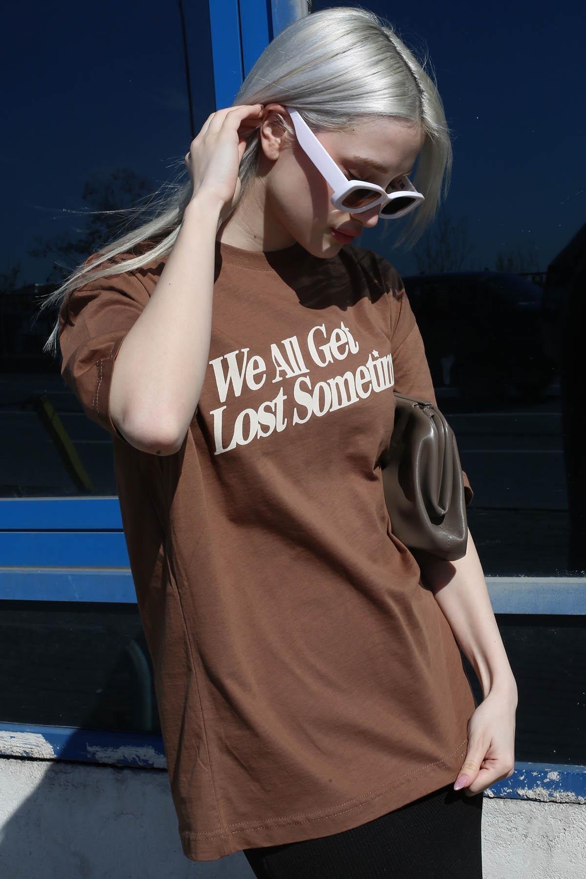 Kahverengi Baskılı Oversize Tişört Mg1532 Kahverengi Baskılı Oversize Tişört Mg1532 MG1532 L