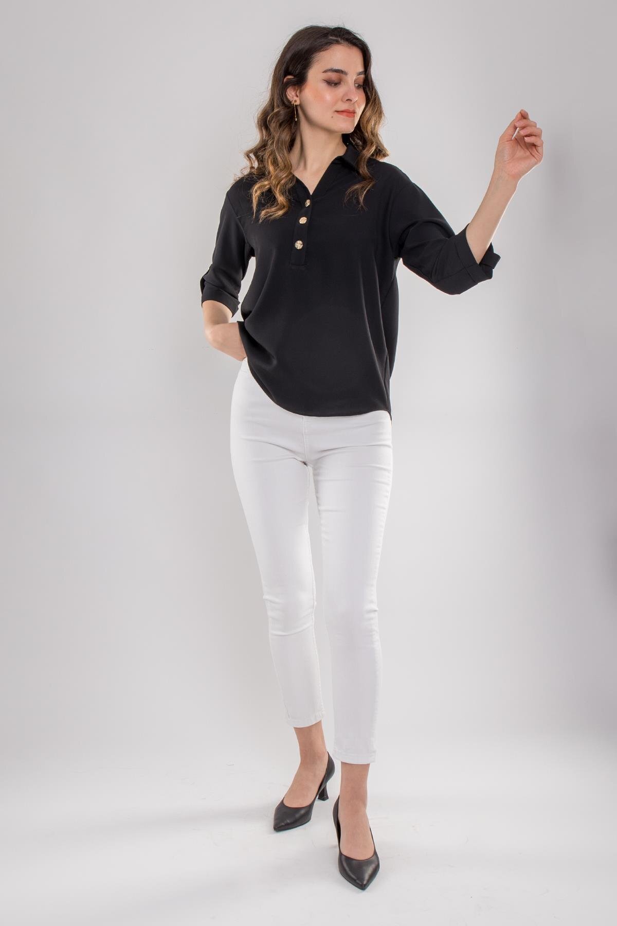 50665 Truvakar Kol Gold Gül Düğmeli Kadın Krep Gömlek 50665 Truvakar Kol Gold Gül Düğmeli Kadın Krep Gömlek 23Y.KKBY0104.00005 XL