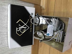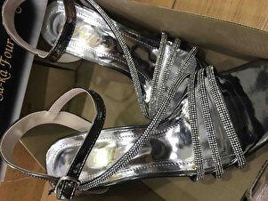 Kadın Platin Gri Rugan Parlak Taşlı Biyeli Önü Açık Kalın Topuklu Ayakkabı Kadın Platin Gri Rugan Parlak Taşlı Biyeli Önü Açık Kalın Topuklu Ayakkabı EP0038 40