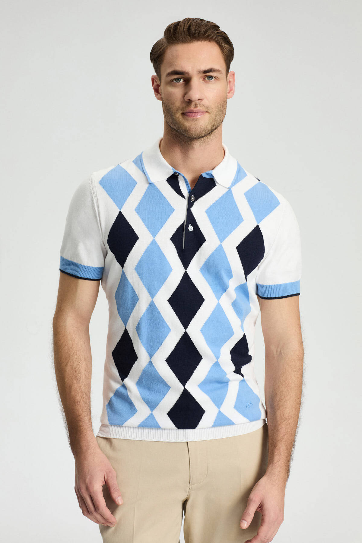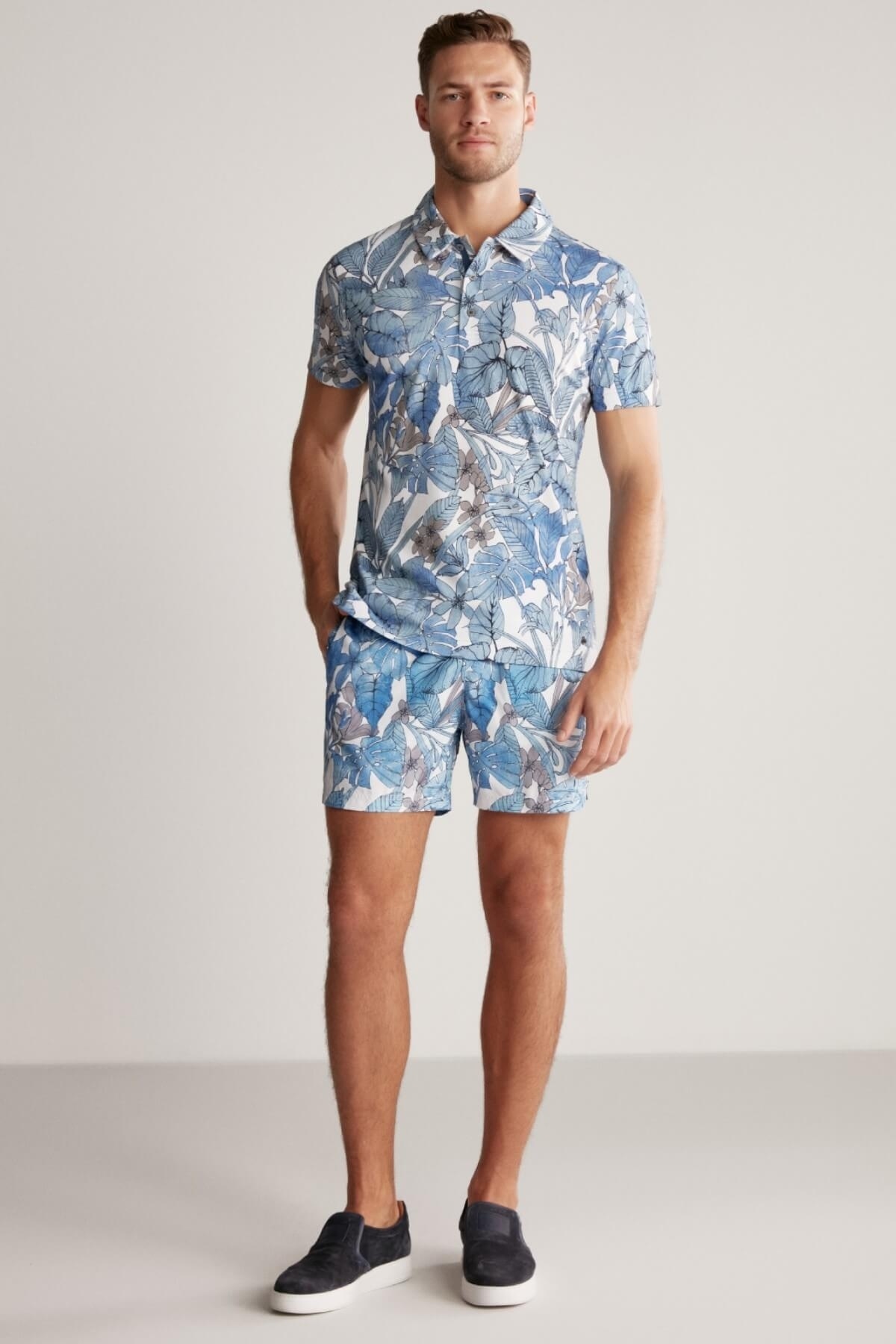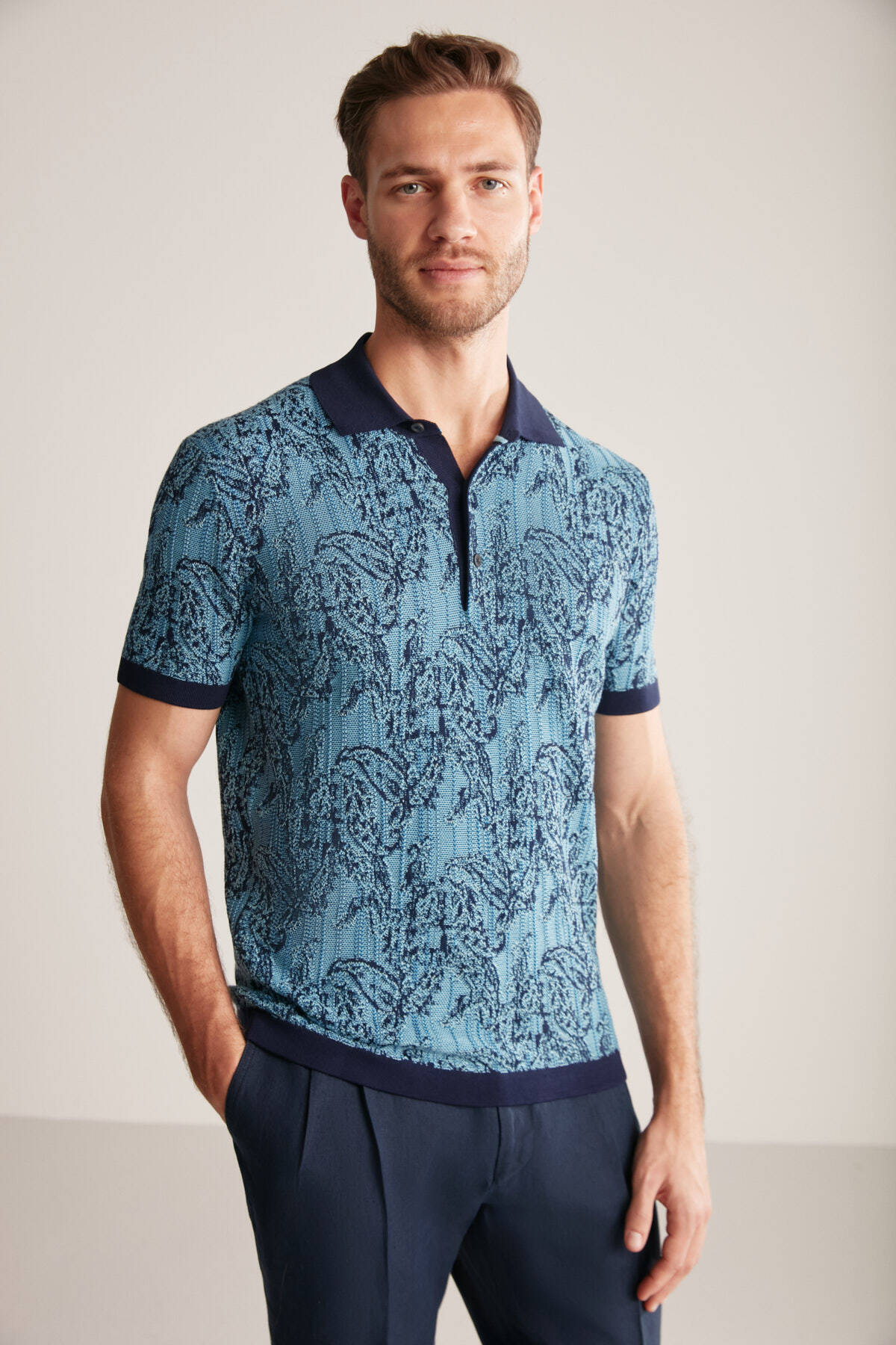 Çiçek Desenli Mavi Polo Yaka T-shirt Çiçek Desenli Mavi Polo Yaka T-shirt 232923|222 3XL