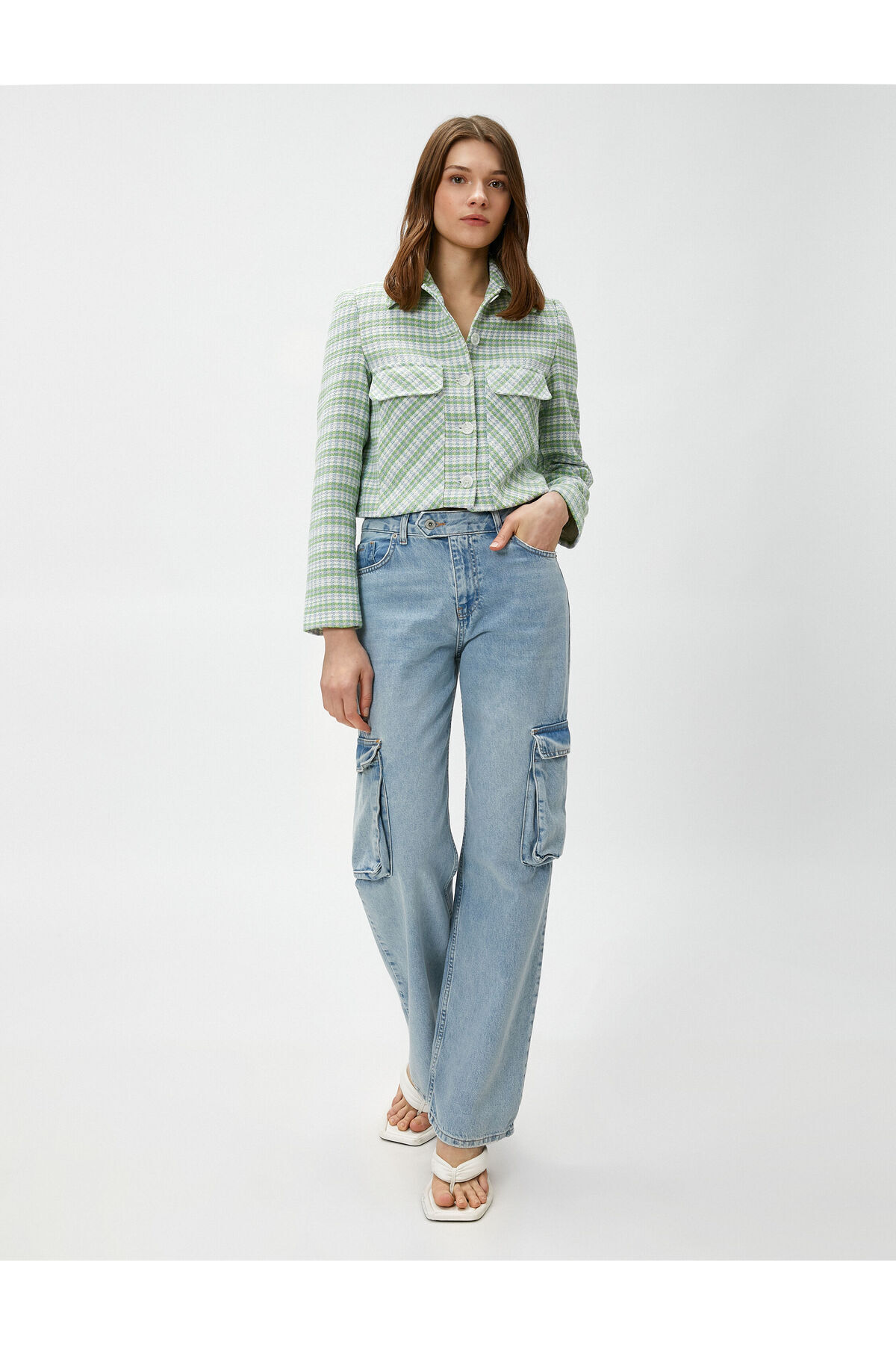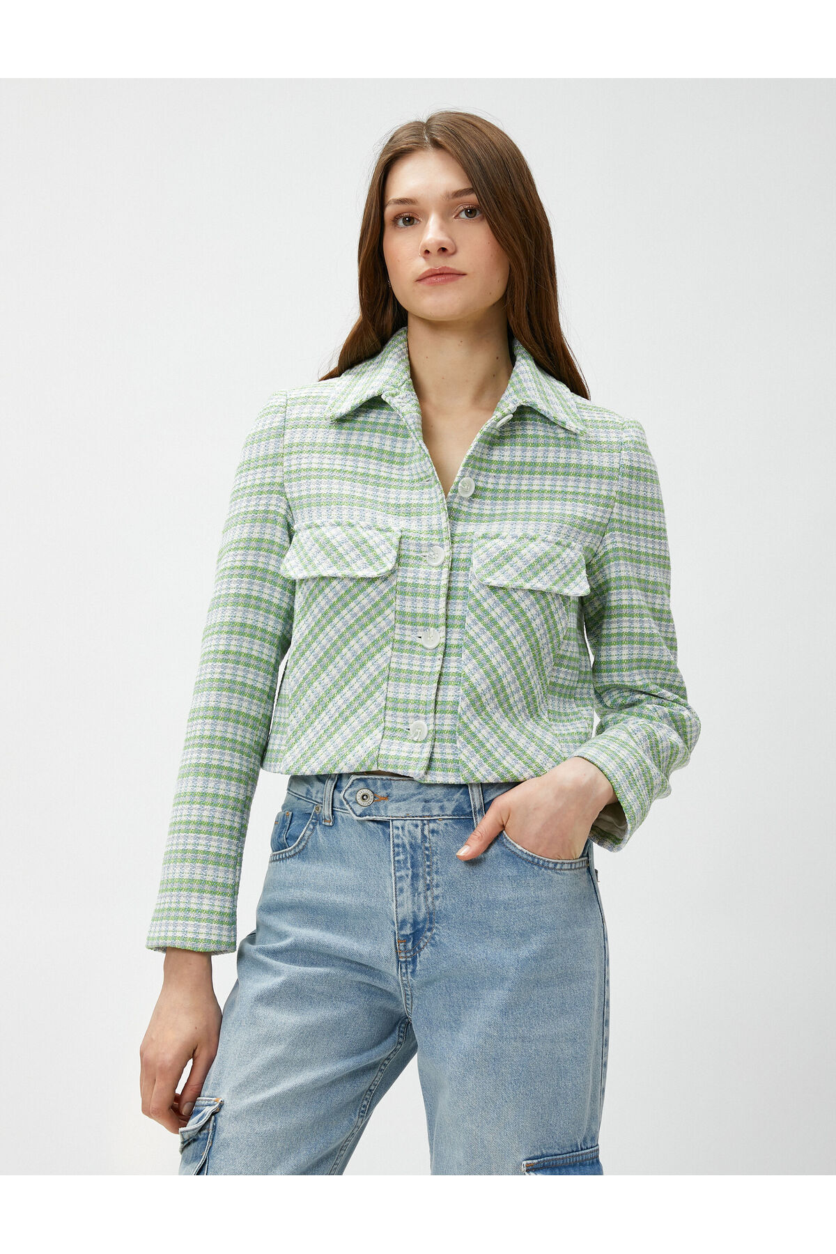 Kısa Ceket Düğmeli Cepli Gömlek Yaka Kısa Ceket Düğmeli Cepli Gömlek Yaka 3SAK50021PW 42