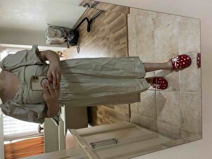 Kolları baya gösterişli tatlı bir elbise prenses elbiselerine benziyor, 160 cm boy, 57 kg, 80 B göğüs ölçüsüne 38 beden tam oldu göğsünüz büyük ise bir beden büyük tercih edebilirsiniz, yaşıma pek gitmedi ama ben yine de iyede etmeyeceğim, beğendim, elbisenin üst tarafında astar var altında yok, yaz ayları için kalın olabilir sonbahar ve bahar aylarında İzmir’de, sıcak yerlerde giyilebilir, kargo çabuk geldi Trendyol expres ile göndermişler, kargo sorunsuz teslim etti, elbisede defo yok sağlam geldi
