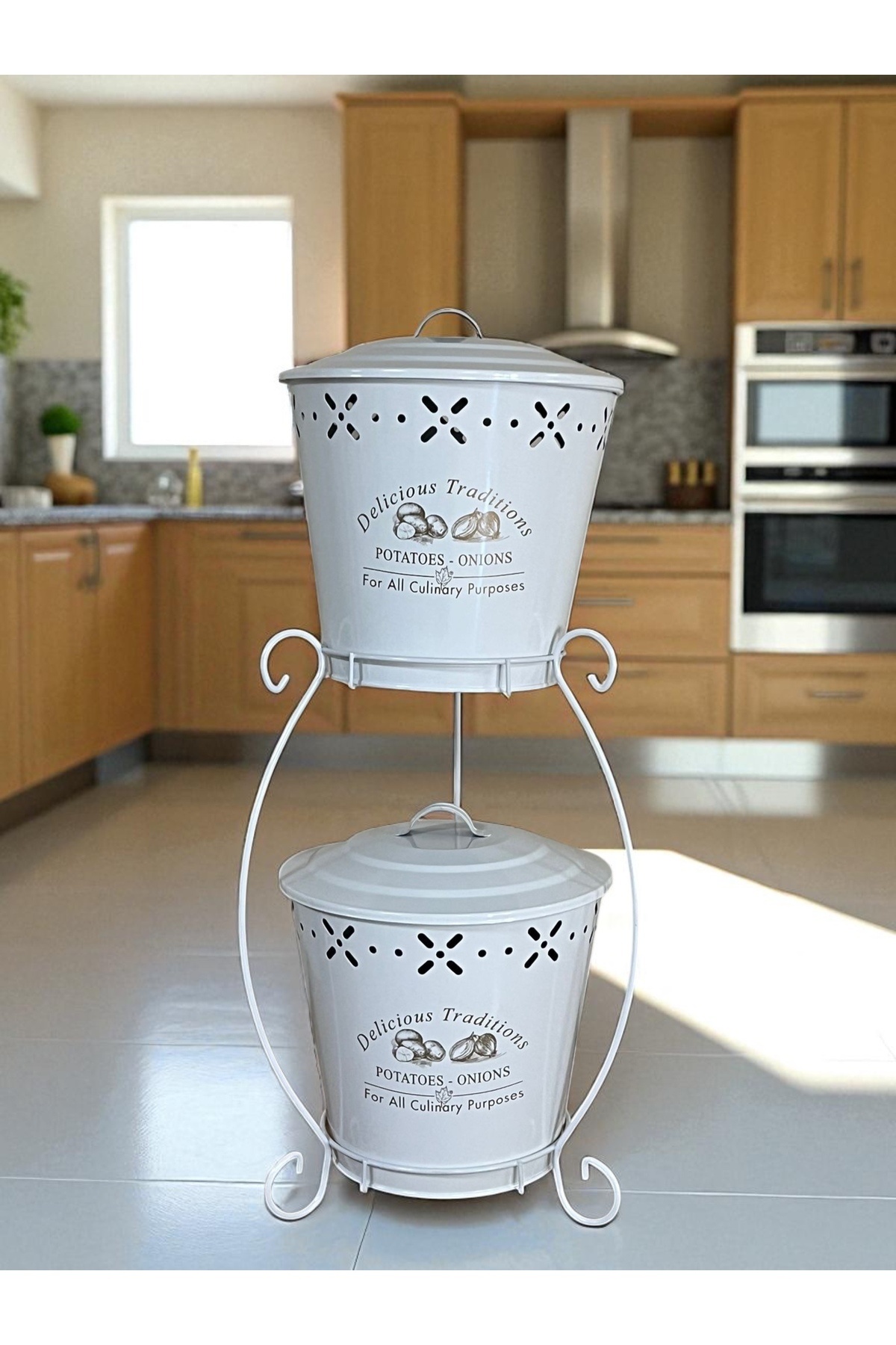 مشخصات فنی 2 Katlı Metal Patates Soğan Kovası - Sebzelik - Patates Soğanlık Sepeti Beyaz جنس فلز Bakım Talimatları (Gıda Temas) Ürünün kullanım ömrünü korumak için ürüne özel bakım talimatlarını takip ediniz. مشخصات کلی