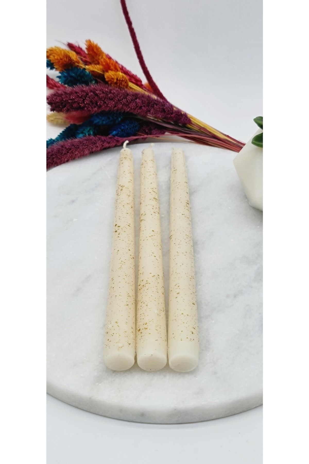 3 Lü Şamdan Mum Krem Altın Yaldız 3 Lü Şamdan Mum Krem Altın Yaldız GZMH-98933 تک سایز