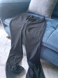 Premium Kalite Ultra Esnek Yüksek Bel Likralı Siyah çizgili Palazzo Pantolon Premium Kalite Ultra Esnek Yüksek Bel Likralı Siyah çizgili Palazzo Pantolon KREPBOL0708 XL