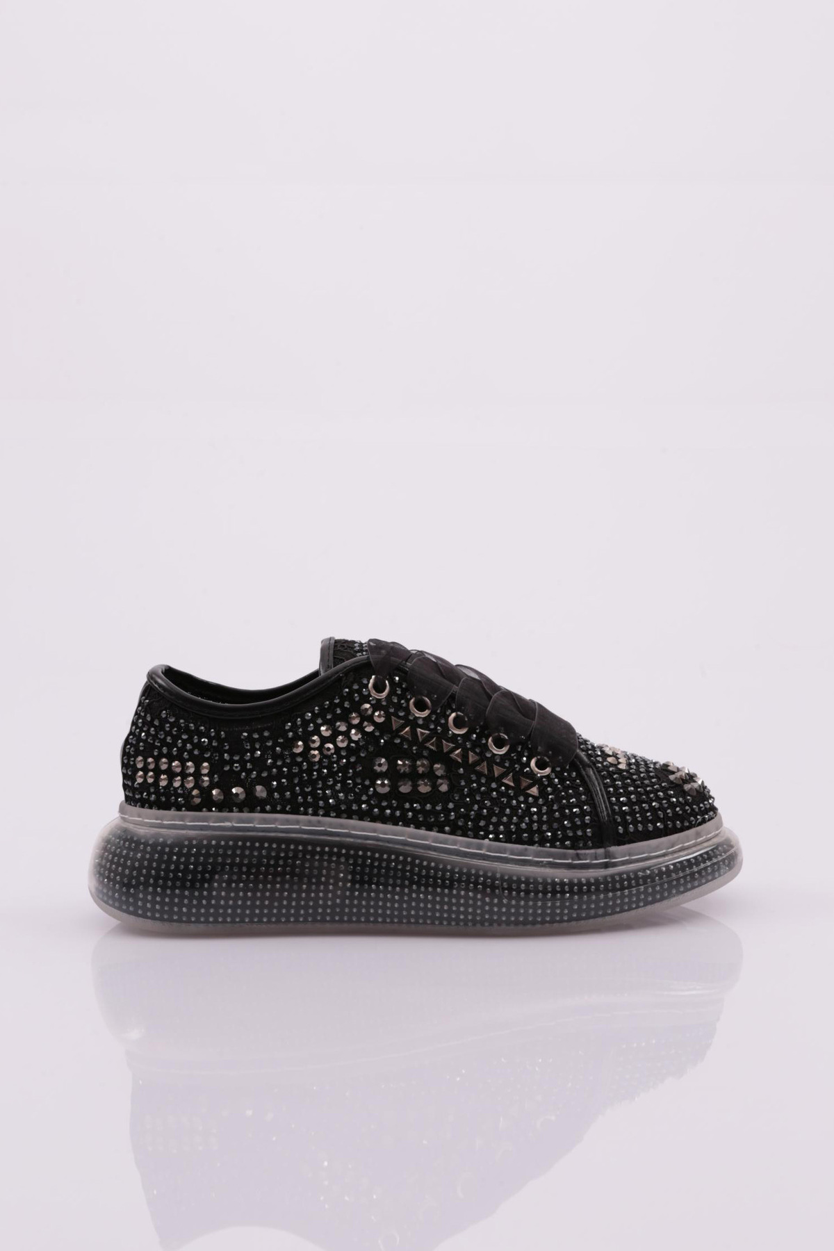 Kadın Yanları Kristal Taş Tokalı Bağcıklı Ayakkabı Siyah Kırışık 98521097 Kadın Yanları Kristal Taş Tokalı Bağcıklı Ayakkabı Siyah Kırışık 98521097 40