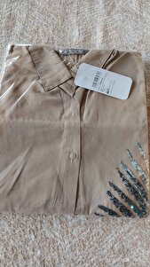 Vizon Palmiye Pul Detaylı Oversize Dokuma Poplin Gömlek GML-19001016 Vizon Palmiye Pul Detaylı Oversize Dokuma Poplin Gömlek GML-19001016 L