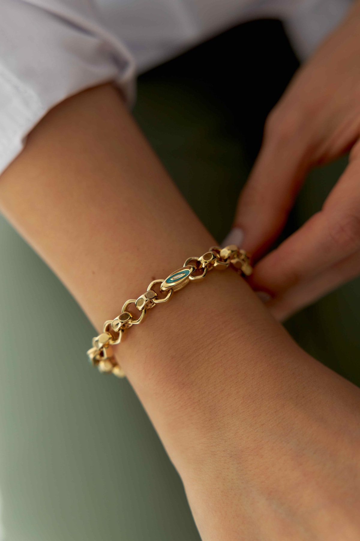 14 Ayar Altın Mineli Sallantılı Kalp Yıldız Bileklik 14 Ayar Altın Mineli Sallantılı Kalp Yıldız Bileklik YKKLY00000720 19 cm