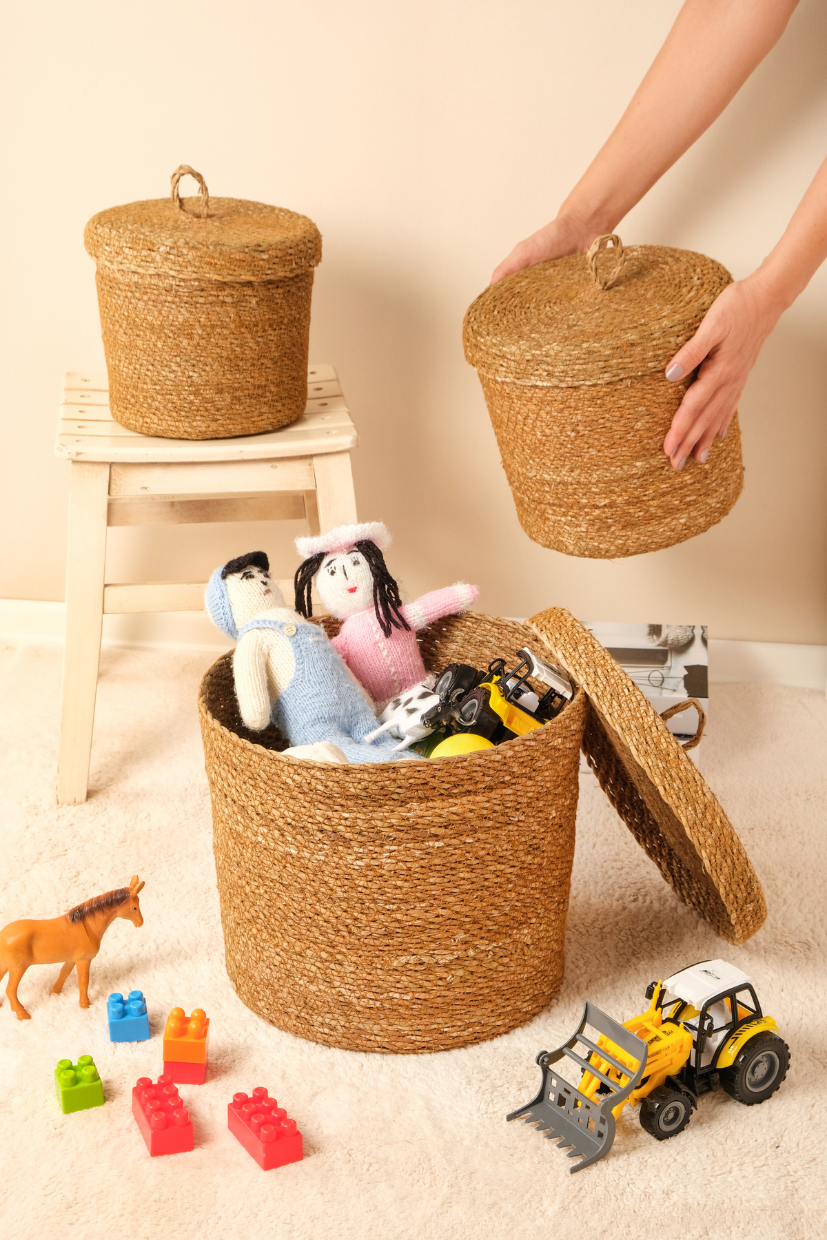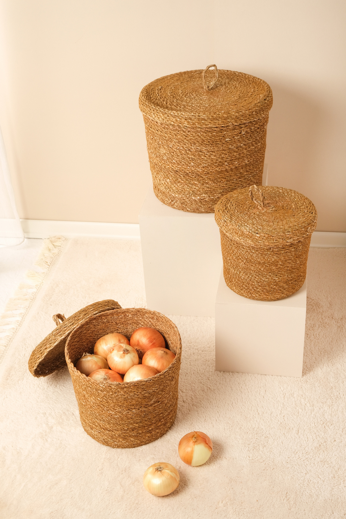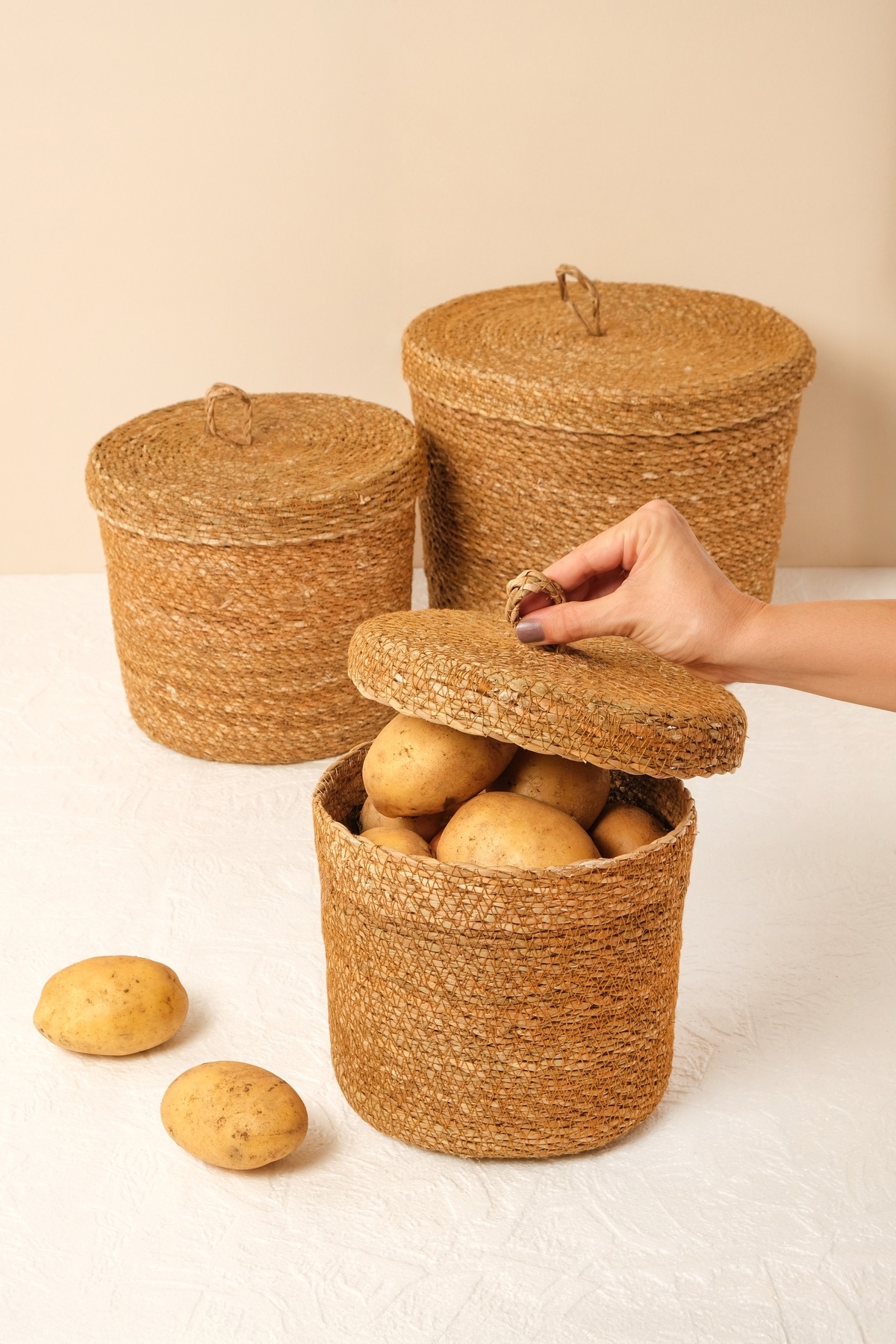 Arleen - 3lü Dekoratif El Örmesi Kapaklı Hasır Sepet Seti, Organizer, Düzenleyici, Saklama Kutusu Arleen - 3lü Dekoratif El Örmesi Kapaklı Hasır Sepet Seti, Organizer, Düzenleyici, Saklama Kutusu AHA3DDEOKHSS01 تک سایز