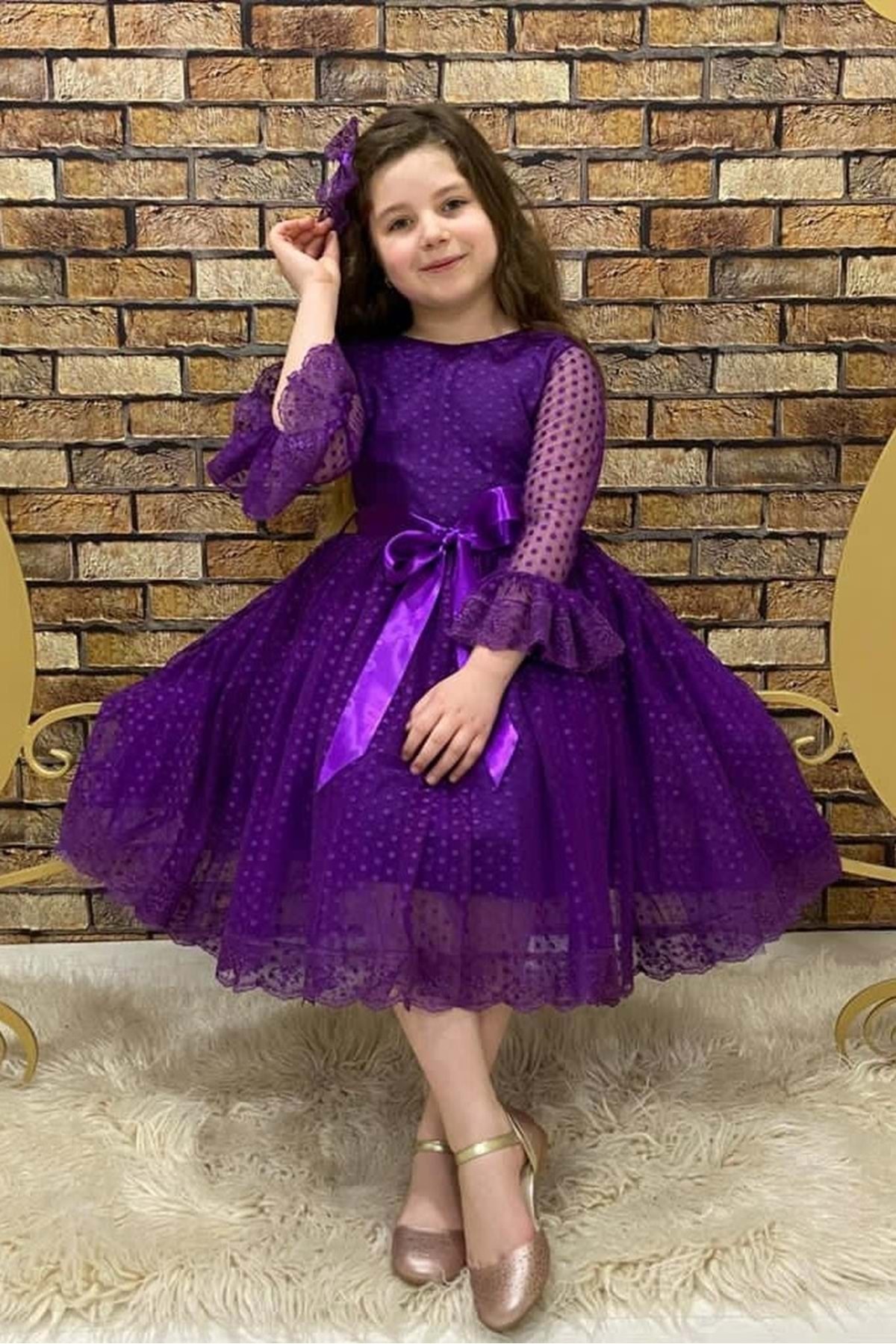 Rengarenk Fransız Dantel Tokalı Kız Çocuk Elbise MOR Rengarenk Fransız Dantel Tokalı Kız Çocuk Elbise MOR DANTEL-PMP 13-14 Yaş
