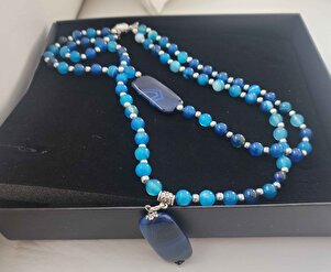 Mavi Akik Iki Sıralı Uzun Denge, Güç Ve Nazardan Koruma Kolyesi Mavi Akik Iki Sıralı Uzun Denge, Güç Ve Nazardan Koruma Kolyesi 2911 تک سایز