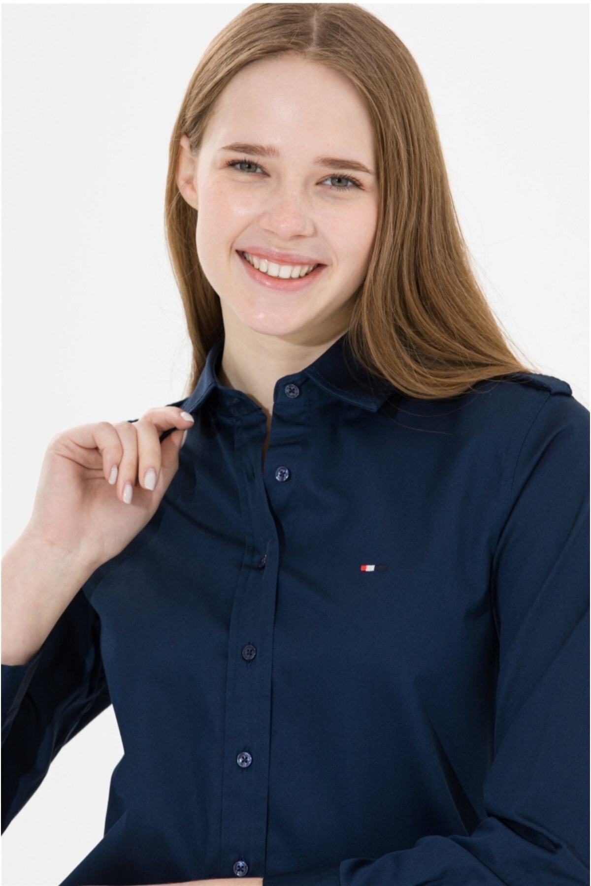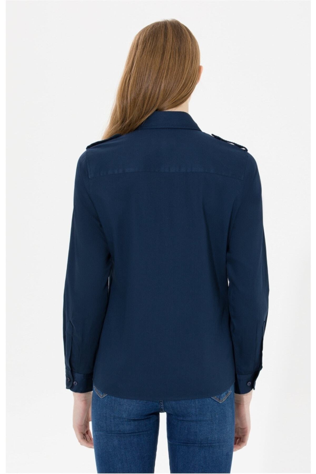 Kadin Lacivert Gömlek Uzunkol Kadin Lacivert Gömlek Uzunkol 44