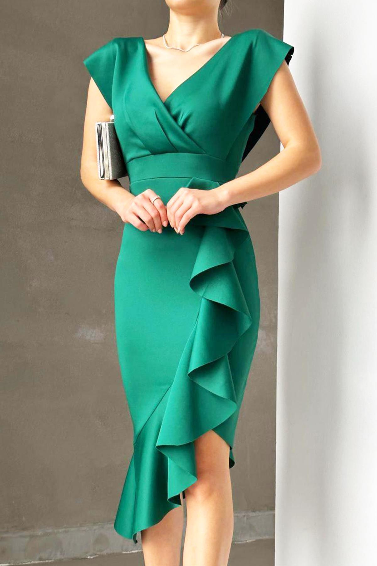 New Sezon Esnek Yeşil Scuba Kumaş Volan Detay Yırtmaçlı Uzun Elbise 729 582443 New Sezon Esnek Yeşil Scuba Kumaş Volan Detay Yırtmaçlı Uzun Elbise 729 582443 DNM-729 L