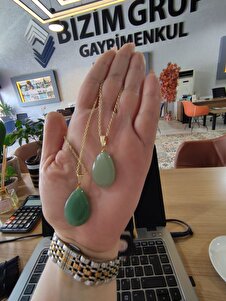 Sertifikalı 24k Altın Kaplama Damla Kesim Aventurin Taşı Kolye Sertifikalı 24k Altın Kaplama Damla Kesim Aventurin Taşı Kolye IGHFA16 45 cm