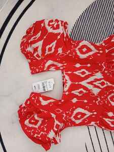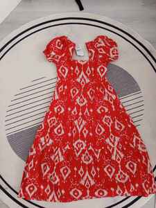 Yarım Kol Baskılı Poplin Elbise Kırmızı Yarım Kol Baskılı Poplin Elbise Kırmızı ccf3-10094 XL