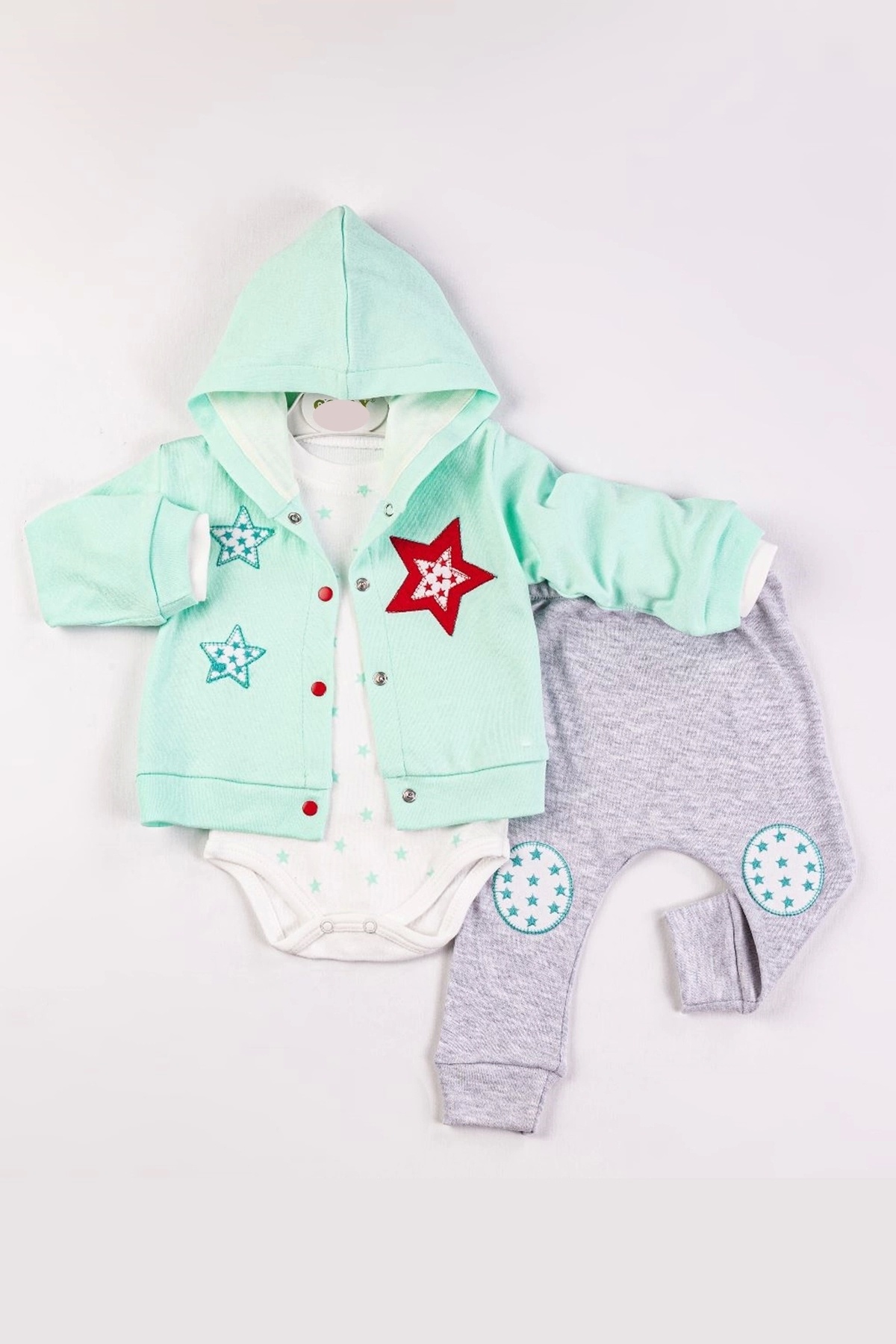 Yıldız Nakışlı Kapişonlu Kız Bebek Takımı Yıldız Nakışlı Kapişonlu Kız Bebek Takımı P898S7195 3-6 AY