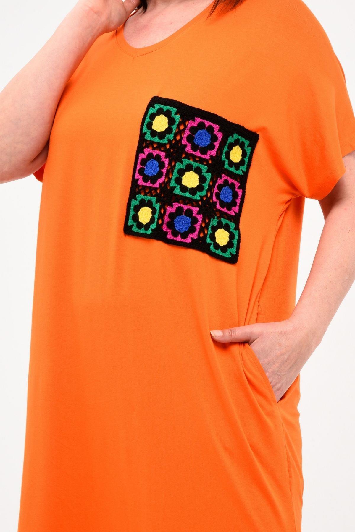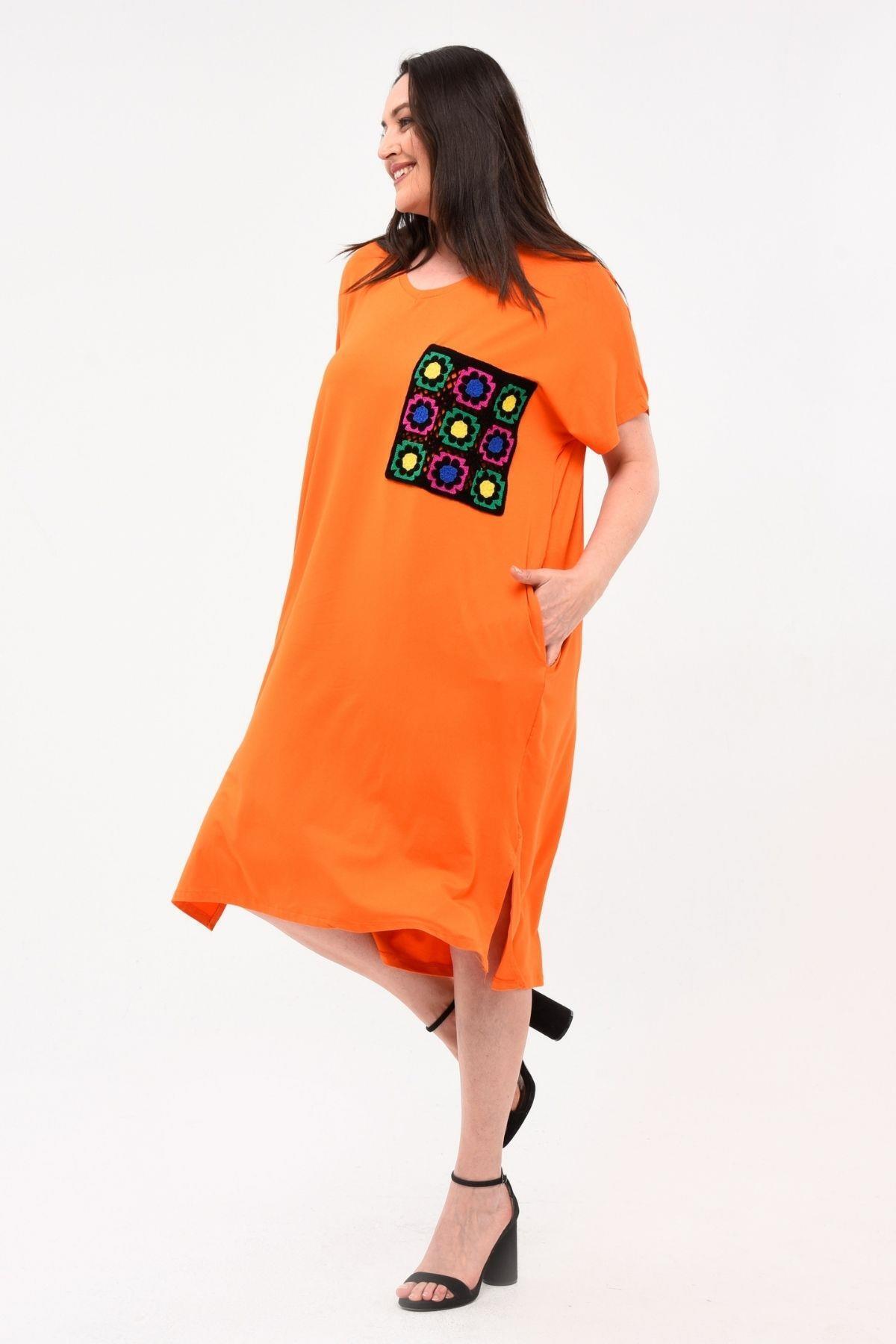 Kadın Büyük Beden Örgü Cep Detaylı Turuncu Elbise Kadın Büyük Beden Örgü Cep Detaylı Turuncu Elbise 6674 3XL