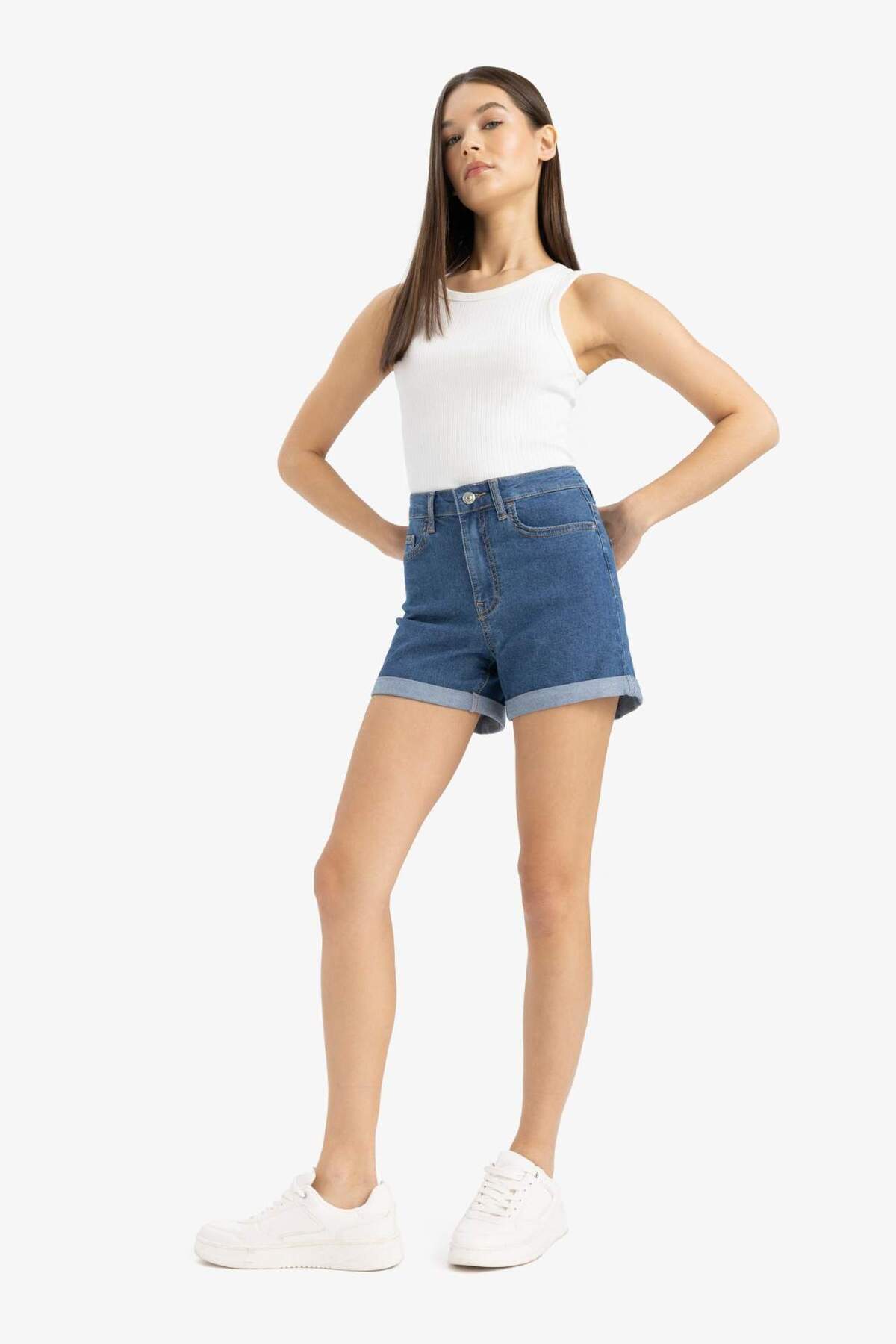 Normal Bel Katlamalı Paça Basic Düz Jean Şort A1959AX23SM Normal Bel Katlamalı Paça Basic Düz Jean Şort A1959AX23SM 46
