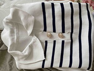 Çizgili Fitilli Düğme Detaylı Bluz Çizgili Fitilli Düğme Detaylı Bluz 246145 L