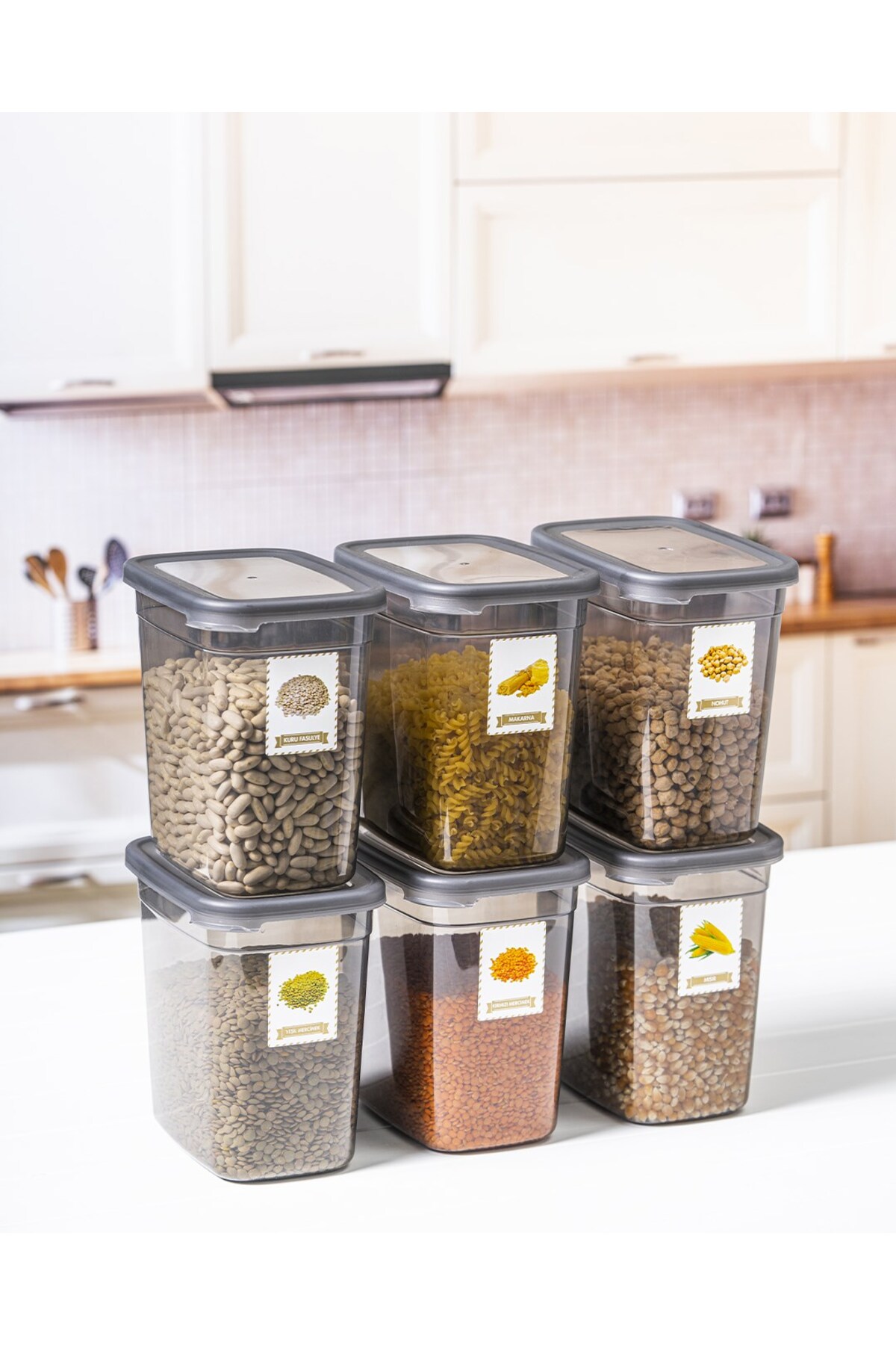 6'lı Antrasit Dikdörtgen Saklama Kabı Seti 2000ml - Çoklu Set Yapılabilen Set