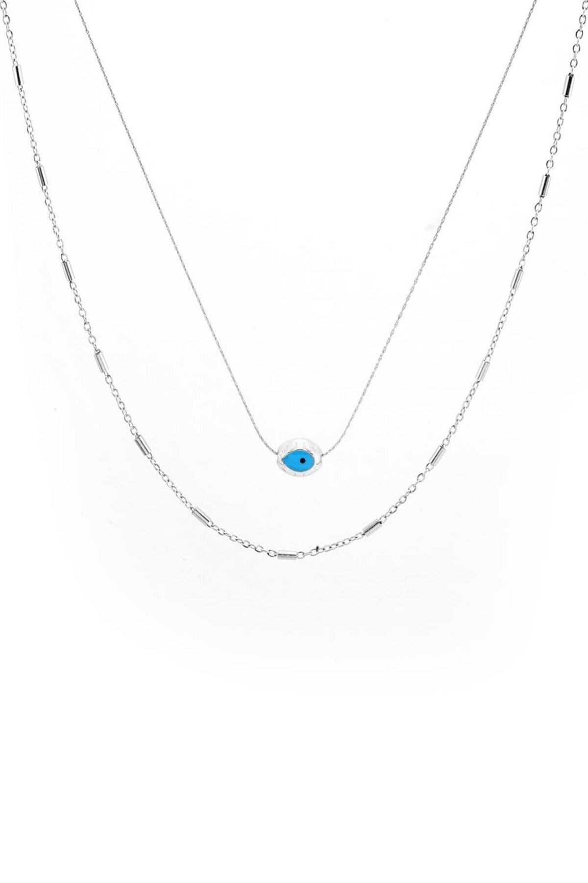 925 Ayar Gümüş Gold Kaplama Nazar Boncuklu Kolye 925 Ayar Gümüş Gold Kaplama Nazar Boncuklu Kolye AHMT21987-105 45 cm