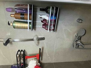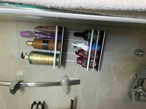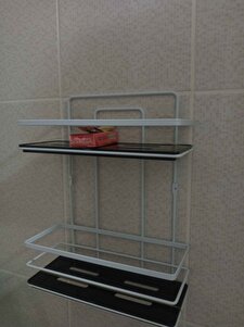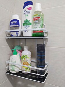 Kristal Raflı Paslanmaz Lamalı Beyaz Banyo Ve Kozmetik Düzenleyici Ikili Banyo Rafı Şampuanlık Kristal Raflı Paslanmaz Lamalı Beyaz Banyo Ve Kozmetik Düzenleyici Ikili Banyo Rafı Şampuanlık HMY-LŞ02 تک سایز