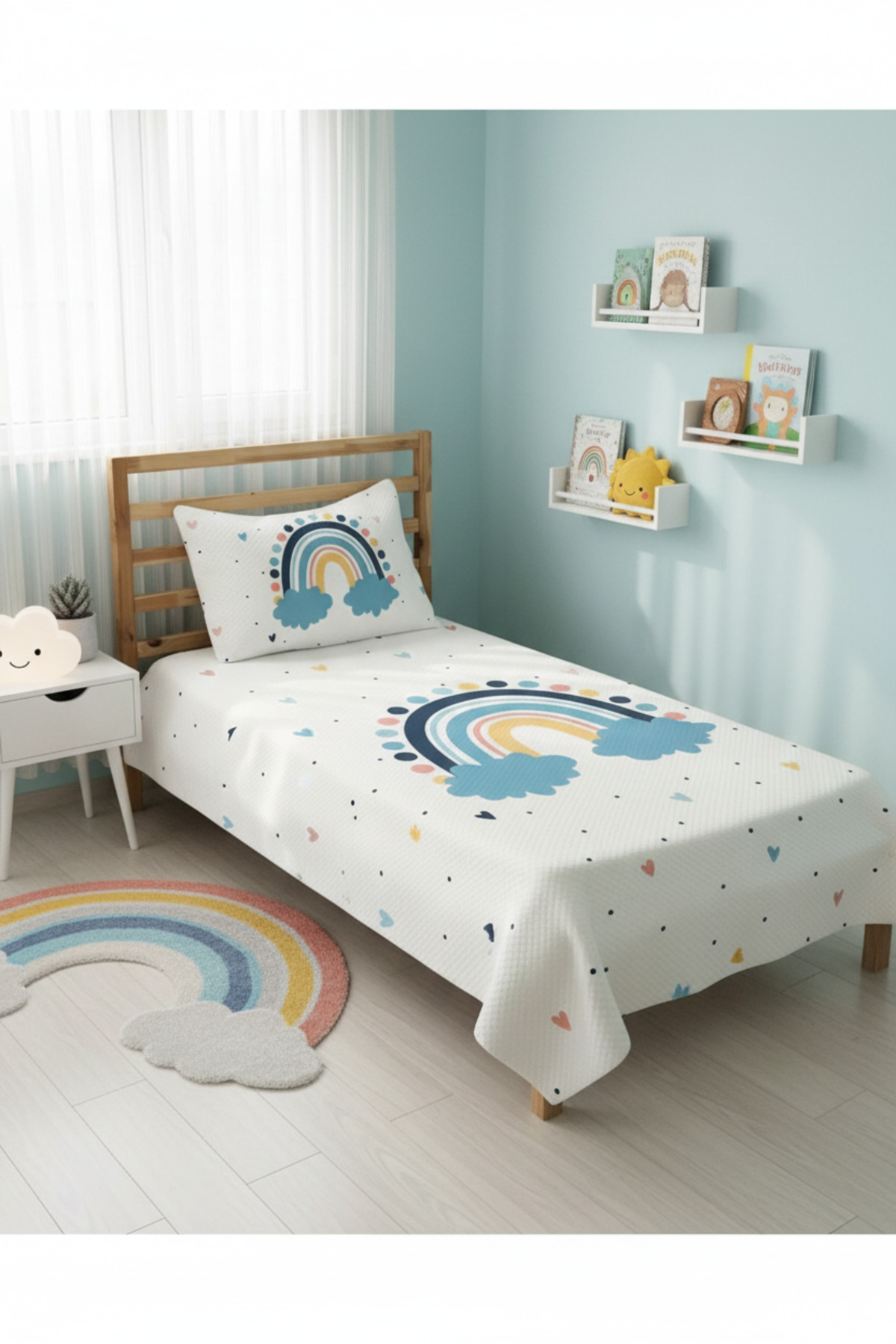 Gökkuşağı Desenli Bebek Ve Çocuk Baskılı Tek Kişilik Pike Takımı 160x230 Beyaz Gökkuşağı Desenli Bebek Ve Çocuk Baskılı Tek Kişilik Pike Takımı 160x230 Beyaz 83913 تک سایز