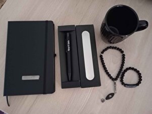 Kişiye Özel Siyah Defter & Kalem & Tespih & Boncuk Bileklik & Kupa Bardağı Hediye Seti Kişiye Özel Siyah Defter & Kalem & Tespih & Boncuk Bileklik & Kupa Bardağı Hediye Seti 00208 تک سایز