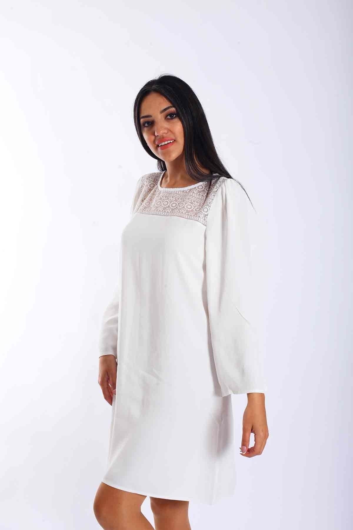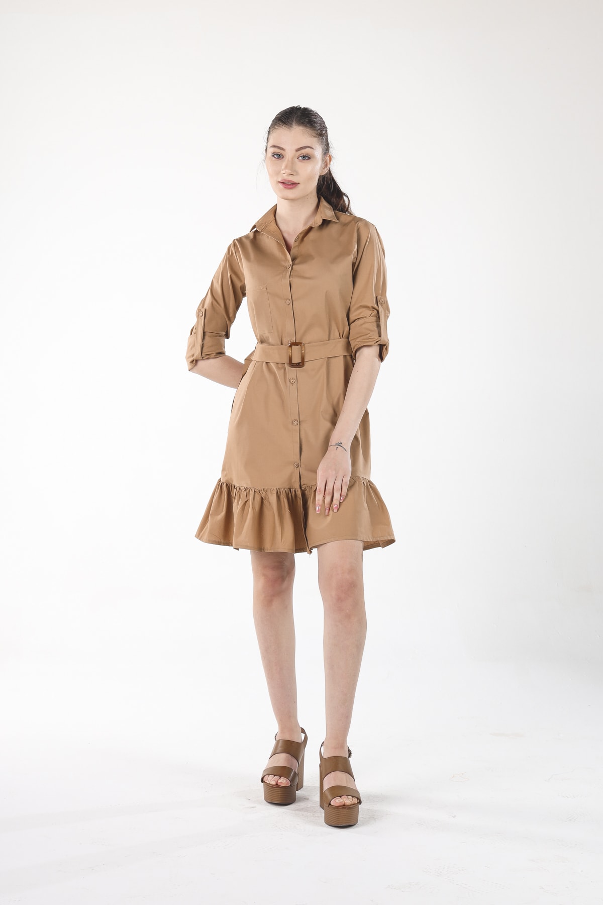 Beyaz Eteği Volanlı Kemerli Gömlek Elbise Beyaz Eteği Volanlı Kemerli Gömlek Elbise RBA-1003 L