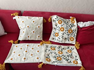 4’lü Punch Işlemeli Nakışlı Çiçek Desenli Dekoratif Kırlent Kılıfı Panç 4’lü Punch Işlemeli Nakışlı Çiçek Desenli Dekoratif Kırlent Kılıfı Panç punchç 43 x 43