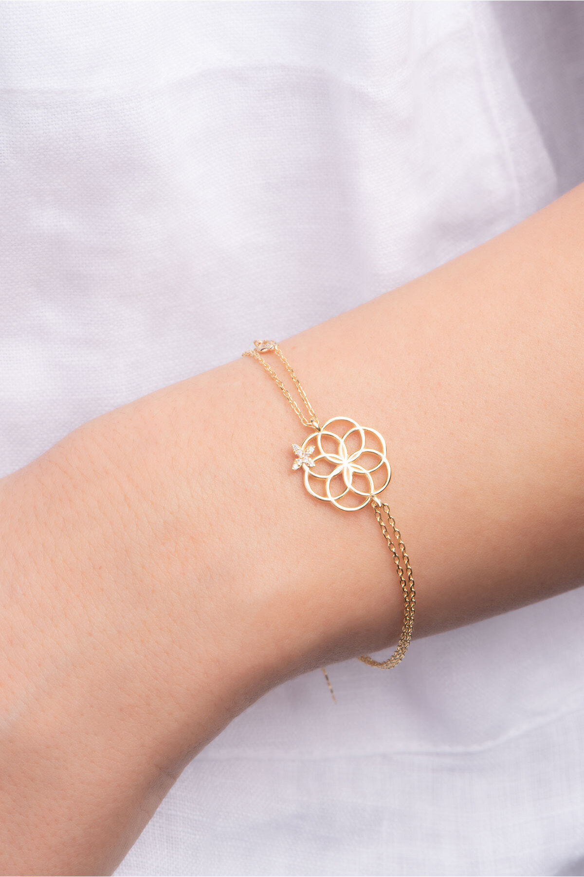 Yaşam Çiçeği 18 Ayar Sarı Altın Kaplama 19 Cm Gümüş Şans Bileklik Yaşam Çiçeği 18 Ayar Sarı Altın Kaplama 19 Cm Gümüş Şans Bileklik 07287480144 16 cm