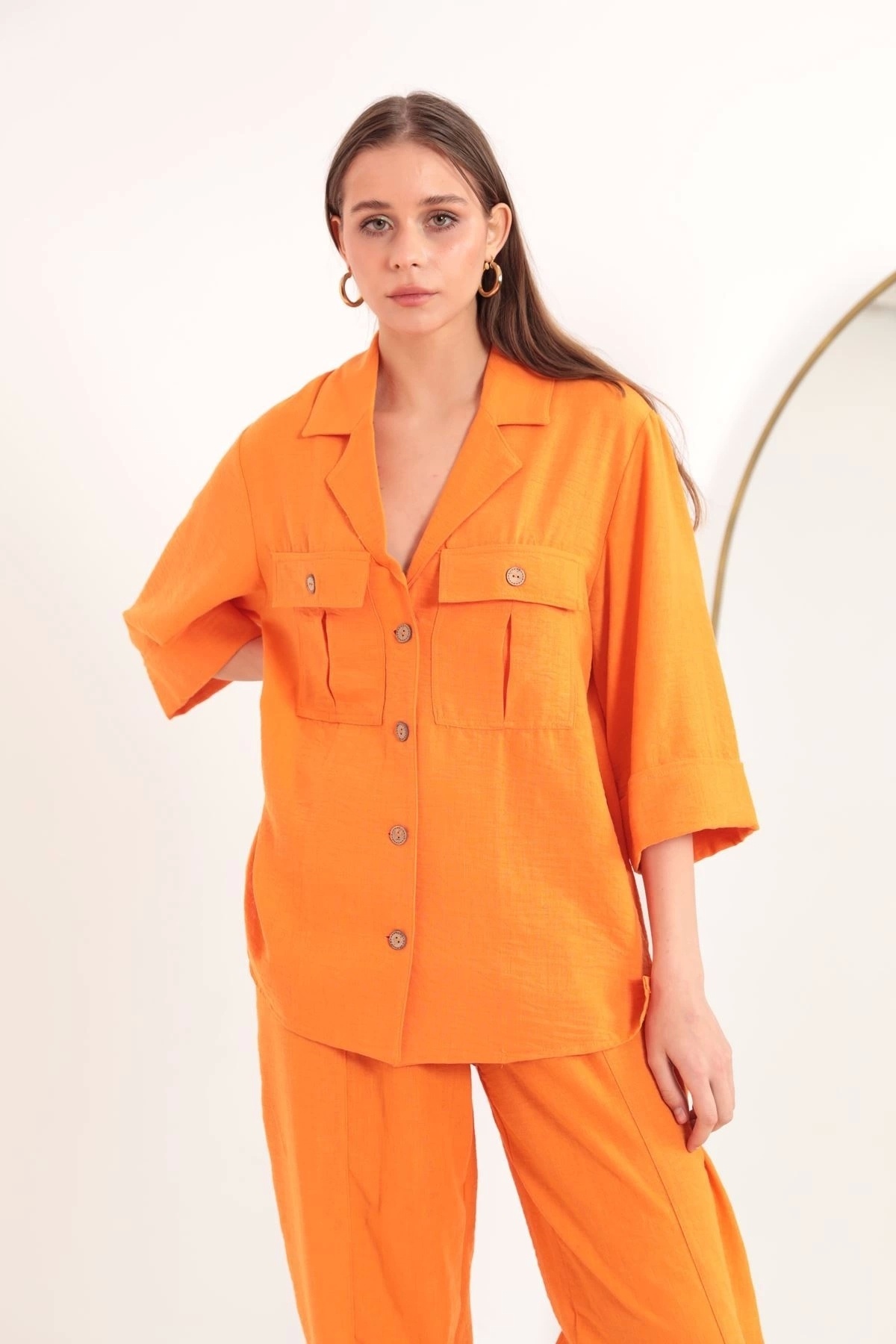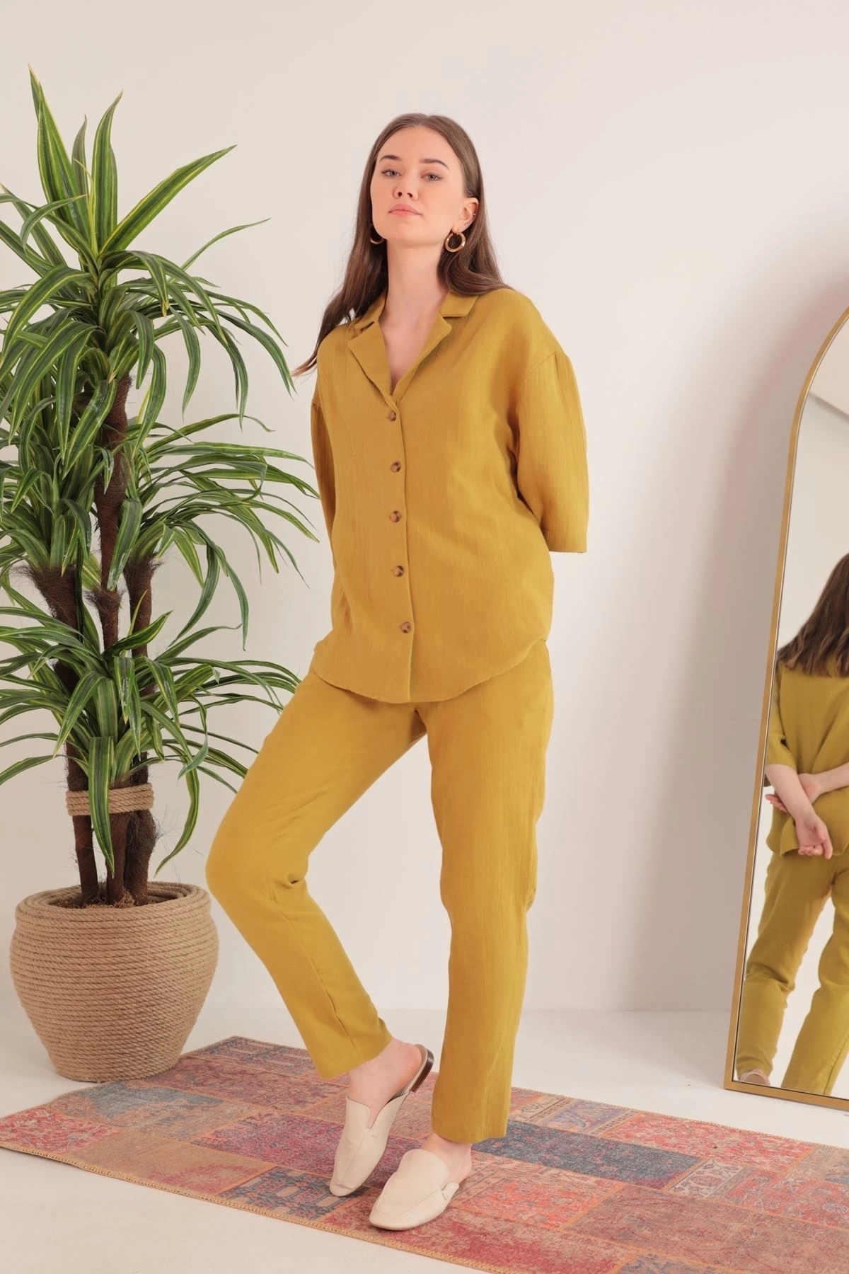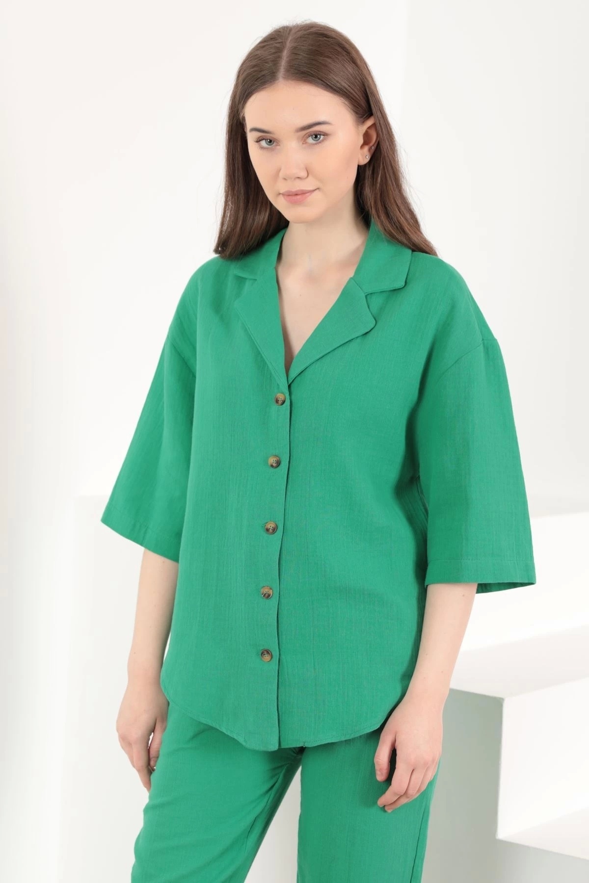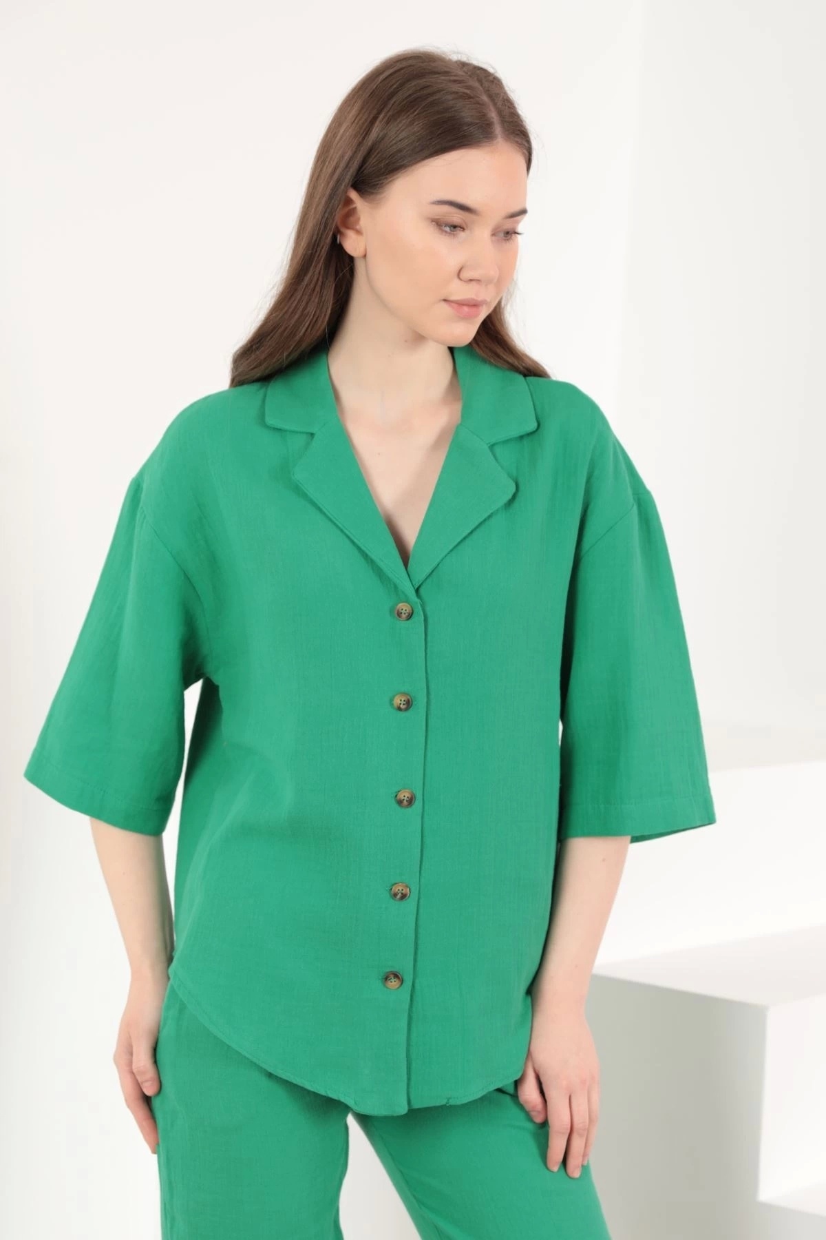 Müslin Kumaş Ceket Yaka Kadın Gömlek-yeşil Müslin Kumaş Ceket Yaka Kadın Gömlek-yeşil 23Y070-001 XL
