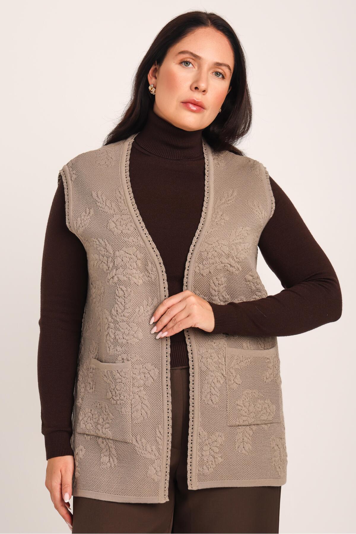 Kadın Vizon Cepli Kolsuz Triko Örme Yelek Kadın Vizon Cepli Kolsuz Triko Örme Yelek 1199 3XL