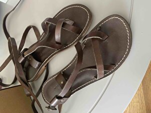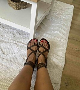 Uzun Roma Hakiki Deri El Yapımı Düz Kadın Sandalet Uzun Roma Hakiki Deri El Yapımı Düz Kadın Sandalet BS016 41