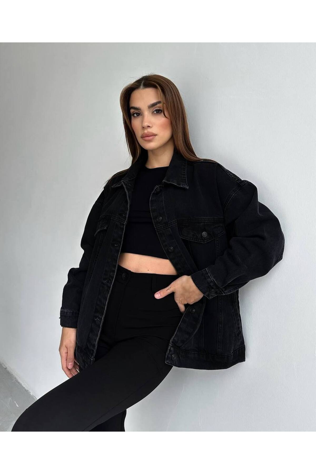 Kadın Siyah Kot Ceket Ovarsize . Kadın Siyah Kot Ceket Ovarsize . TYC00127811555 46
