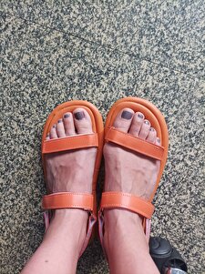 Turuncu Cırtlı Günlük Puff Kadın Sandalet Turuncu Cırtlı Günlük Puff Kadın Sandalet 0398 40